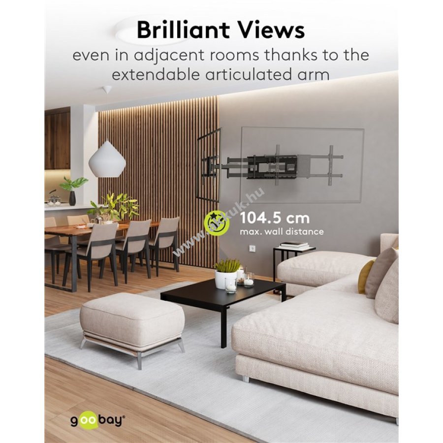 104.5 cm-ig bővíthető, teljes flexibilitás, forgatható és dönthető, VESA kompatibilitás 200x200 mm, 300x200 mm, 400x200 mm, 300x300 mm, 400x300 mm, 400x400 mm, 600x400 mm, 800x400 mm