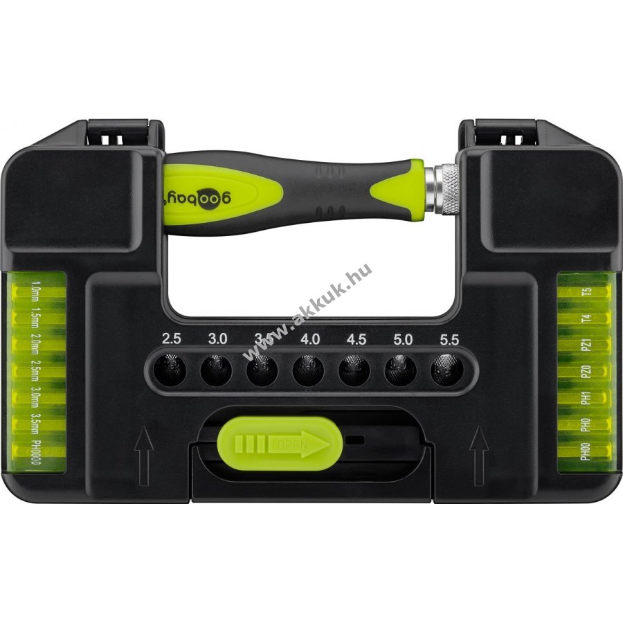 Precíziós csavarozáshoz. 28 bitet tartalmaz: 6db lapos fej: 1 mm, 1,5 mm, 2 mm, 2,5 mm, 3 mm, 3,5 mm 4db Phillips csúcsok: PH000, PH00, PH0, PH1 2x Pozidriv: PZ0, PZ1 9x Torx: T4, T5, T6, T7, T8, T9, T10, T15, T20 7x hatszögletű fejek: T4, T5, T6, T7, T8, T9, T10, T15, T20 7x hatszögletű fejek: T4, T5, T6, T7, T8, T9, T10, T15, T20 H0.7, H0.9, H1.3, H2, H2.5, H3, H4 1x 100 mm-es precíziós csavarfej tartalmazza 7x hatszögletű anyát: 2.5 mm, 3 mm, 3.5 mm, 4 mm, 4.5 mm, 5 mm, 5.5 mm, 5.5 mm. Precíziós csavarhúzó készlet 100 mm-es, króm-vanádium acélból készült bitekkel a fokozott deformációállóság érdekében hobbi- és professzionális munkákhoz. Az ergonomikus markolat különösen csúszásmentes a gumírozott szárnak köszönhetően. Ez rendkívül kényelmes, biztos fogást eredményez munka közben. A jobb csavarfelvételt és a biztonságos nyomatékátvitelt stabil hegyek segítik a szerelés során. Praktikus hordtáskában szállítva.