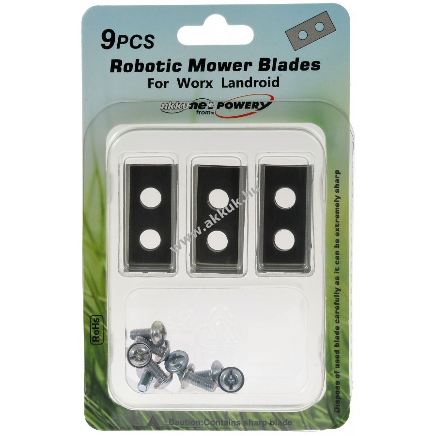 Penge péret: hossza 36mm, furat átmérő 7,5mm, szélesség 18mm. A Worx Landroid robotfűnyírókhoz tervezett penge készlettel mindig éles és hatékony vágást biztosíthat. A 0.75mm vastagságú pengék kiemelkedő tartósságot kínálnak, míg a precíz vágásért az acél kés gondoskodik. A csomagban található 9 darab penge egyszerűen cserélhető, így a fűnyíró robotja mindig a legjobb állapotban tartható. A Worx Landroid fűnyíró robotokhoz való tartalék pengék ideálisak a gyep ápolásához, biztosítva a tökéletes vágást minden használatkor. Csavarokkal együtt szállítjuk.