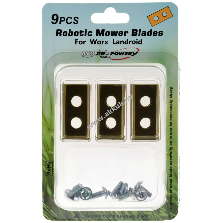 Penge péret: hossza 36mm, furat átmérő 7,5mm, szélesség 18mm. A Worx Landroid robotfűnyírókhoz készült penge készlet a tökéletes választás, ha tartós és megbízható vágást szeretne. Az acél titánium bevonattal ellátott pengék nem csak hogy élesebbek, de hosszabb élettartamot is biztosítanak. A 0.9 mm vastagságú pengék ideálisak a precíz és tiszta vágáshoz, miközben a könnyű cserélhetőségük révén a karbantartás is egyszerűvé válik. A WA0190 és WA0176 típusokkal kompatibilis pengékkel biztos lehet abban, hogy robotfűnyírója mindig a legjobb teljesítményt nyújtja. A csomag csavarokat is tartalmaz.