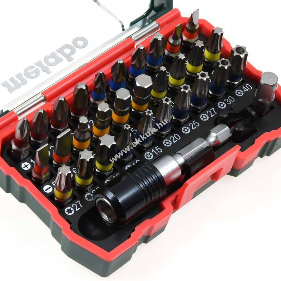 A következőkből áll: S 2 bites, L= 25 mm-es króm-vanádium acélból készült bitek (S2 minőség) 30 bit: 1x PH1 2x PH2 1x PH3 1x PZ1 2x PZ2 1x PZ3 1x SL3 1x SL4 1x SL5 1x4 H3x4x 1x H6 1x T10 1x T15 1x T20 1x T25 1x T27 1x T30 1x T40 Torx szabotázs: 1x T10 1x T15 1x T20 1x T25 1x T27 1x T30 1x mágneses gyorsmágneses 6 mm-es adapter 1x T40 Figyelem ez egy gépi fordítás, amennyiben hibát talál kérjük jelezze felénk.