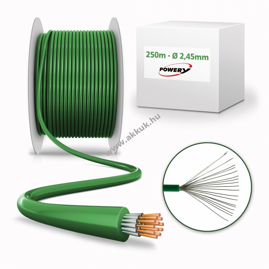 Termékinformáció: - a Husqvarna, Gardena stb. általános robotfűnyíróinak nyírási területének meghatározása - 2,45 mm erős szigetelés Műszaki adatok: - Hossz: 250 m - Anyag: ónozott réz - Külső átmérő: 2,45 mm - Belső átmérő: 1 mm2 Figyelem ez egy gépi fordítás, amennyiben hibát talál kérjük jelezze felénk.