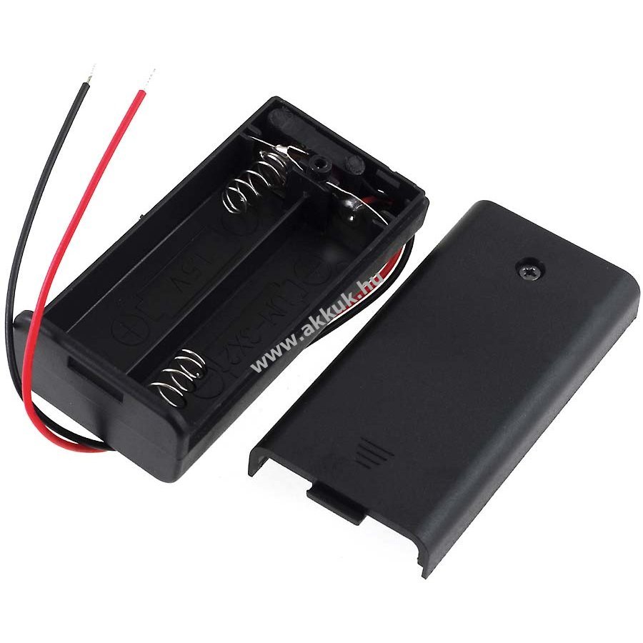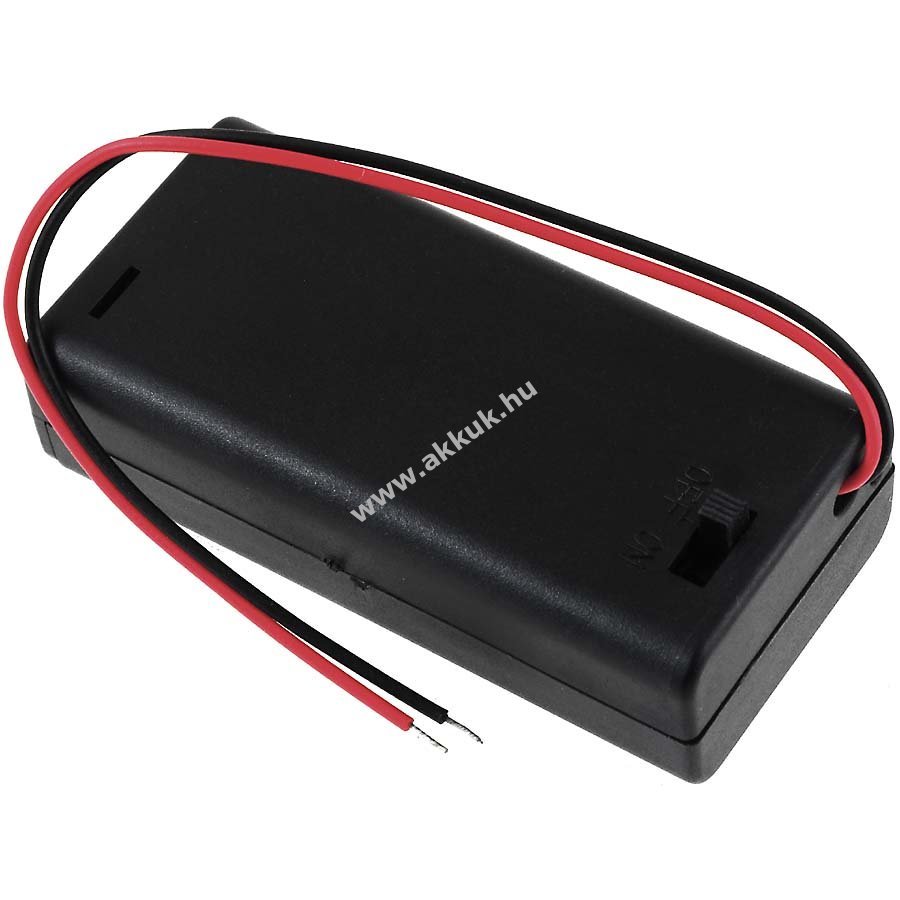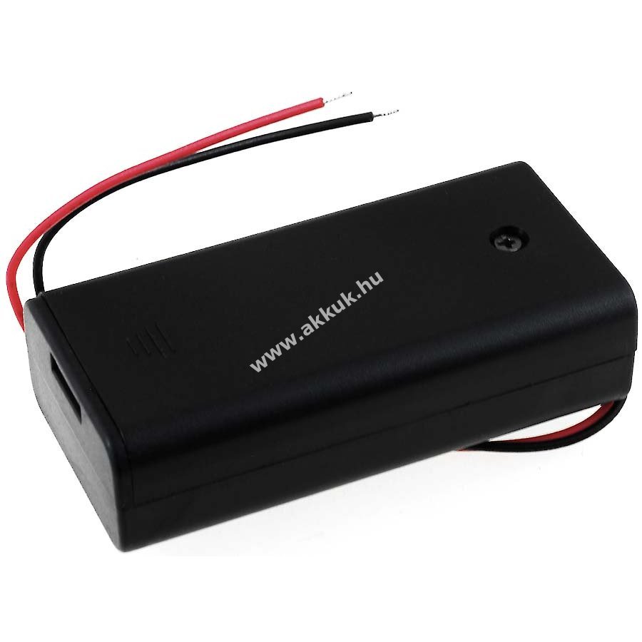 Elemtartó 2 Mignon / AA elemhez vagy újratölthető akkuhoz csatlakozókábellel zárt házban, beépített be- és kikapcsolóval.