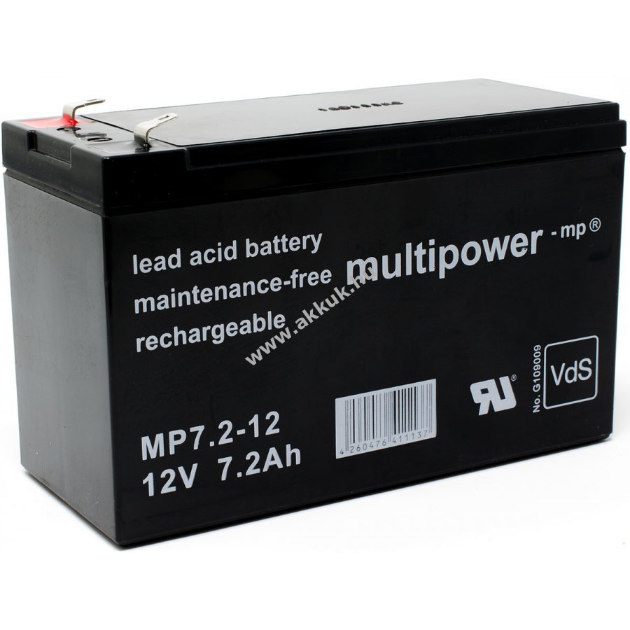 12V 7,2Ah SLA fekete 151mm x 65mm x 102mm 2678 gr. MULTIPOWER 1 év jótállás (további részletek)