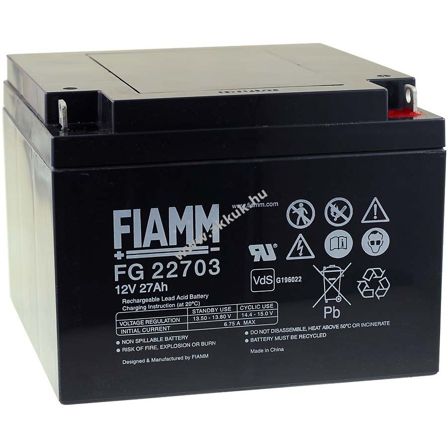 12V 27Ah/324Wh SLA fekete 166mm x 175mm x 125mm 9000 gr. FIAMM 1 év jótállás (további részletek)