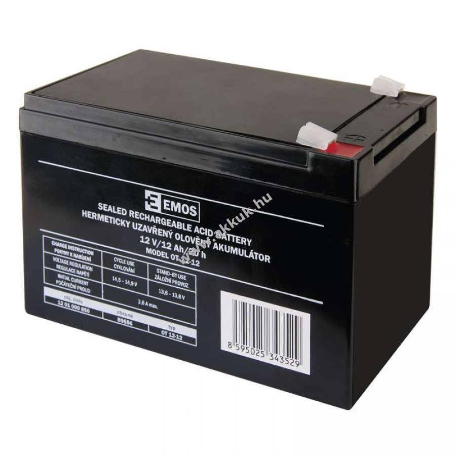 12V 12Ah SLA fekete 151mm x 98mm x 96,5mm 4000 gr. EMOS 1 év jótállás (további részletek)