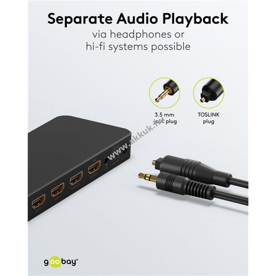 Használjon mátrixkapcsolót a maximális rugalmasság érdekében a HDMI képernyők és terminálok csatlakoztatásához. A többcsatlakozó lehetővé teszi a különböző források és terminálok közötti váltást a távirányítóval, a kábelek újbóli csatlakoztatásának gondja nélkül. A HDMI kapcsoló akár 4db HDMI bemeneti jelet küld akár 2db kimenetre, lehetővé téve a kép és a hang lejátszását több eszközön, például TV-n, projektoron vagy monitoron. A TOSLINK és a 3,5 mm-es jack csatlakozó támogatja a különálló hanglejátszást pl. hi-fi rendszeren, soundbaron vagy fejhallgatón keresztül. A HDMI 4x2 switch támogatja az Ultra HD, a HDTV és az összes 3D formátumot, akár 4K2K 60 Hz-ig Távirányítóval felszerelve a csatlakoztatott készülékek közötti kényelmes váltáshoz A Plug & Play megkönnyíti a HDMI többcsatlakozó csatlakoztatását további illesztőprogramok telepítése nélkül A masszív alumínium ház elvezeti a hőt, és a csatlakozók hátsó elrendezésének köszönhetően egyszerű kábelkezelést tesz lehetővé.