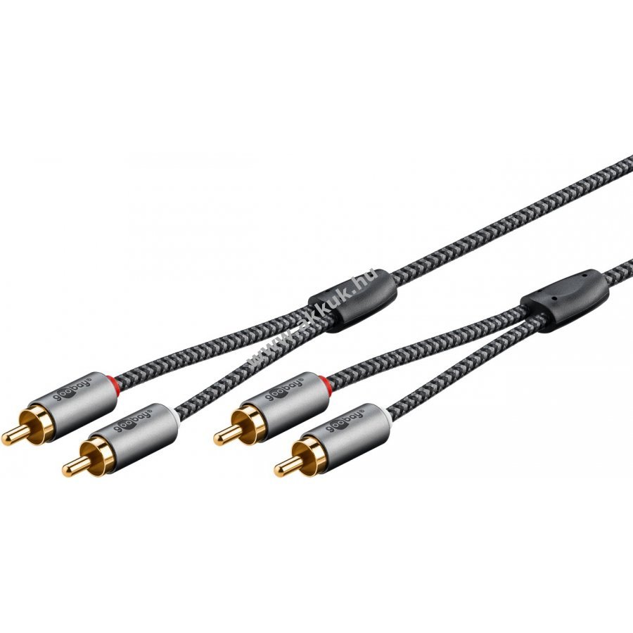 Audiokábel mélynyomó, CD-lejátszó csatlakoztatására olyan kimeneti eszközökhöz, mint például vevőegység, erősítő, keverő vagy TV készülék RCA csatlakozókkal. Rendkívül rugalmas prémium RCA-kábel vékony fémdugóval, hajlításvédelemmel és színre illeszkedő textil kábellel A mélysugárzó kábel fonott textilköpenye kellemes tapintást biztosít és kíméletes az érzékeny felületekkel szemben A piros és fehér színű RCA dugók szabványos színkódolása leegyszerűsíti a csatlakoztatási folyamatot Az aranyozott RCA dugók megakadályozzák a korróziót és különösen tartósak A sztereó RCA-kábel extra rövid, 0,5 m-es, a lehető legjobb jelátvitel érdekében.