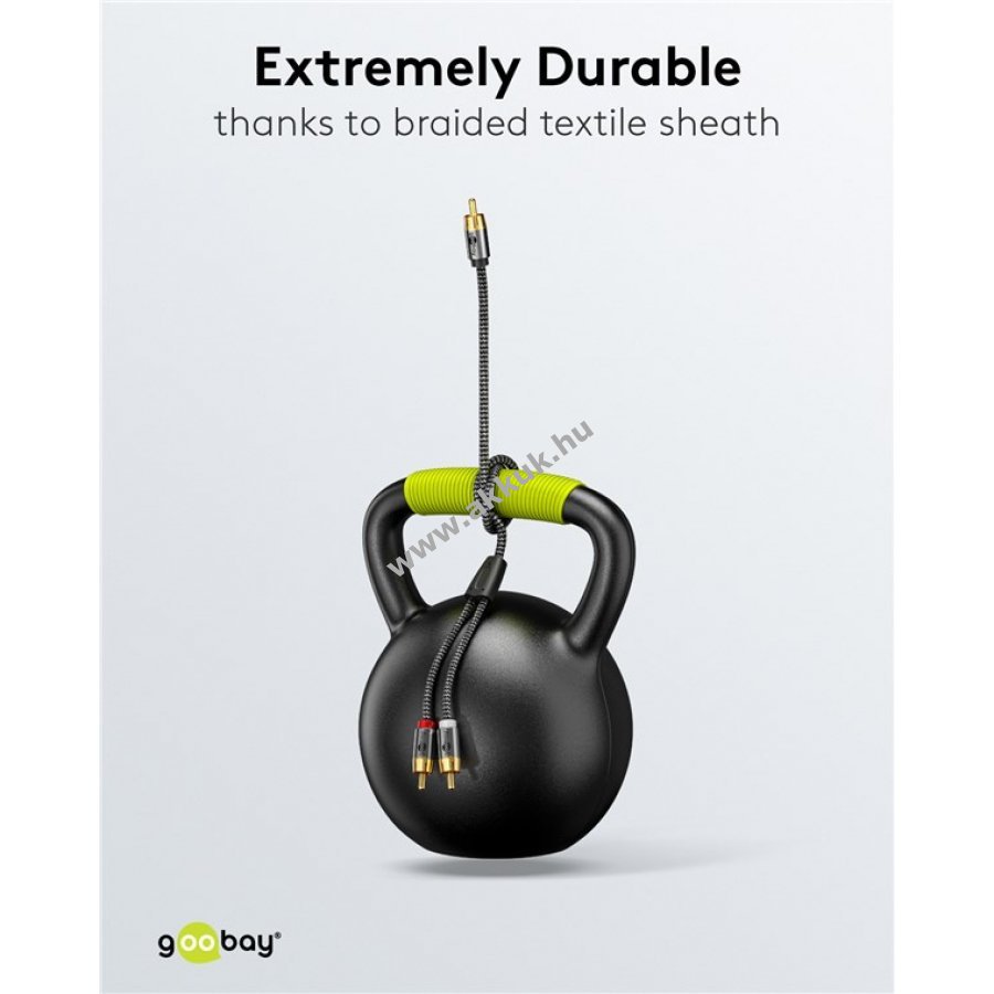 A kábelt HiFi eszközök, például subwoofer csatlakoztatására tervezték receiverhez, erősítőhöz, televízióhoz és házimozi rendszerekhez cinch csatlakozóval.