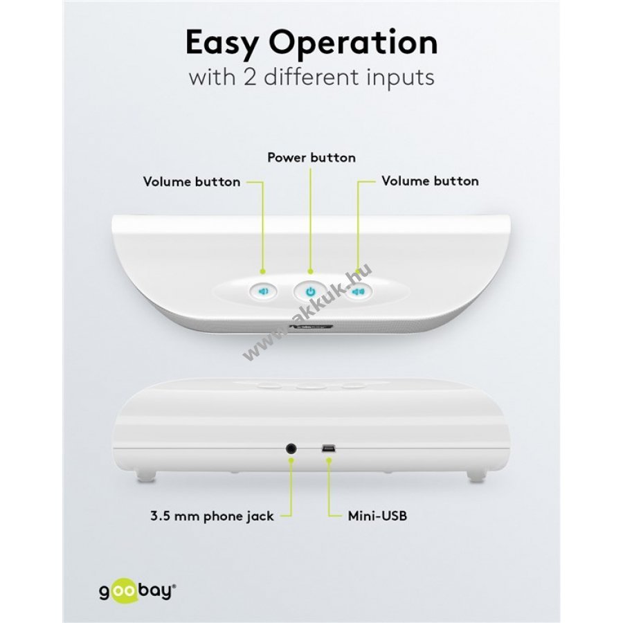 5V 6W (3W+3W) Li-Ion Fehér 212 x 65 x 50 mm 350 gr. Goobay Szavatosság (további részletek) 4040849951220