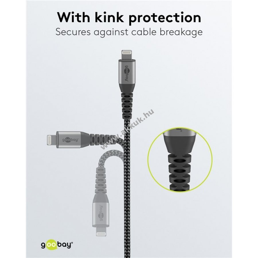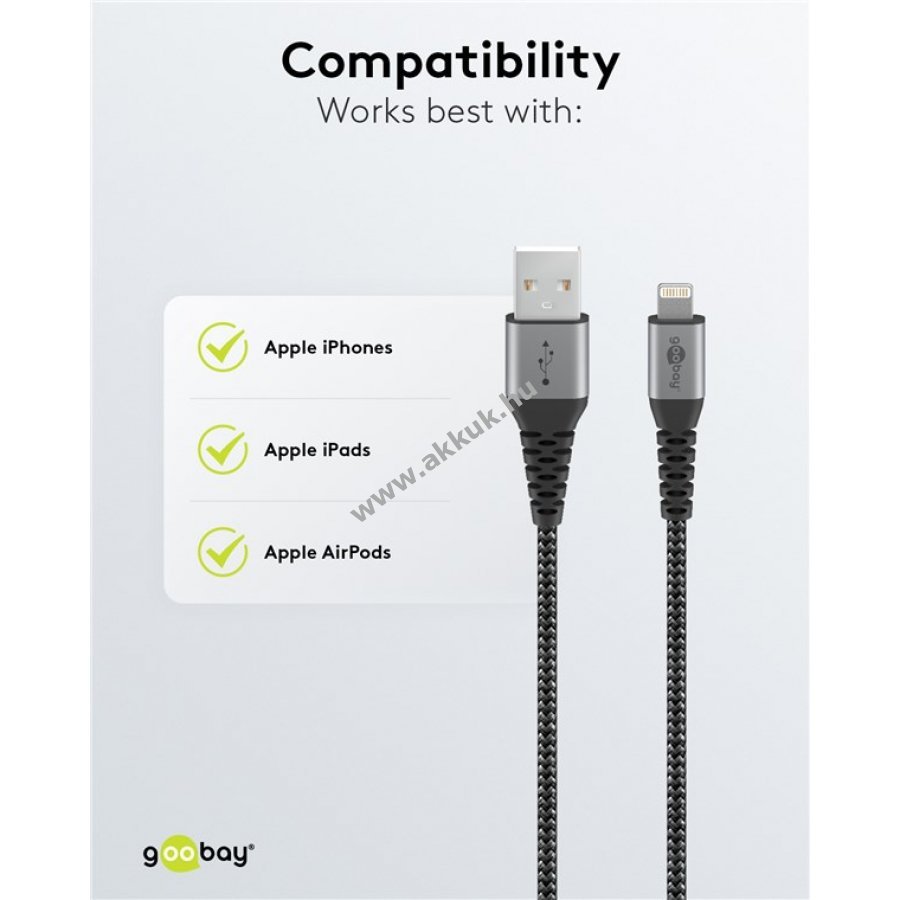 Apple MFi tanúsítvánnyal rendelkezik az összes Apple iPhone, iPad, iPod vagy AirPod modell biztonságos és teljes kompatibilitásával. A robusztus szövetkábel fém csatlakozókkal nemcsak a kiváló megjelenést, hanem a tartósságot is biztosítja. A fonott textil kabát kellemes tapintást nyújt, és kíméletes az érzékeny felületekre is. Ellenálló és optimális hajlításvédelem a fém csatlakozóknál megvédi a kábelek törését és optimális ellenálló képességet biztosít nehéz körülmények között is. Optimális terhelés az erőteljes kábellel és biztonságos adatátvitel akár 480Mbit / s sebességgel.