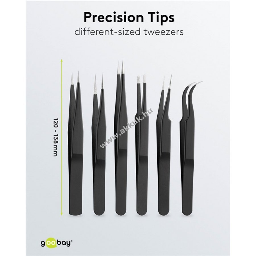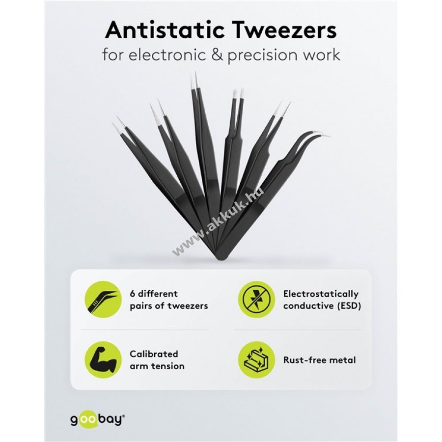 Goobay 6 részes antistatikus precíziós csipesz készlet elektronikához