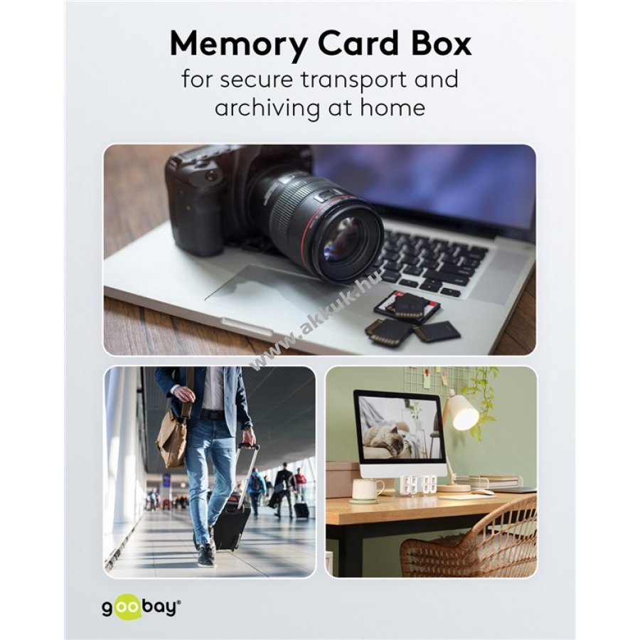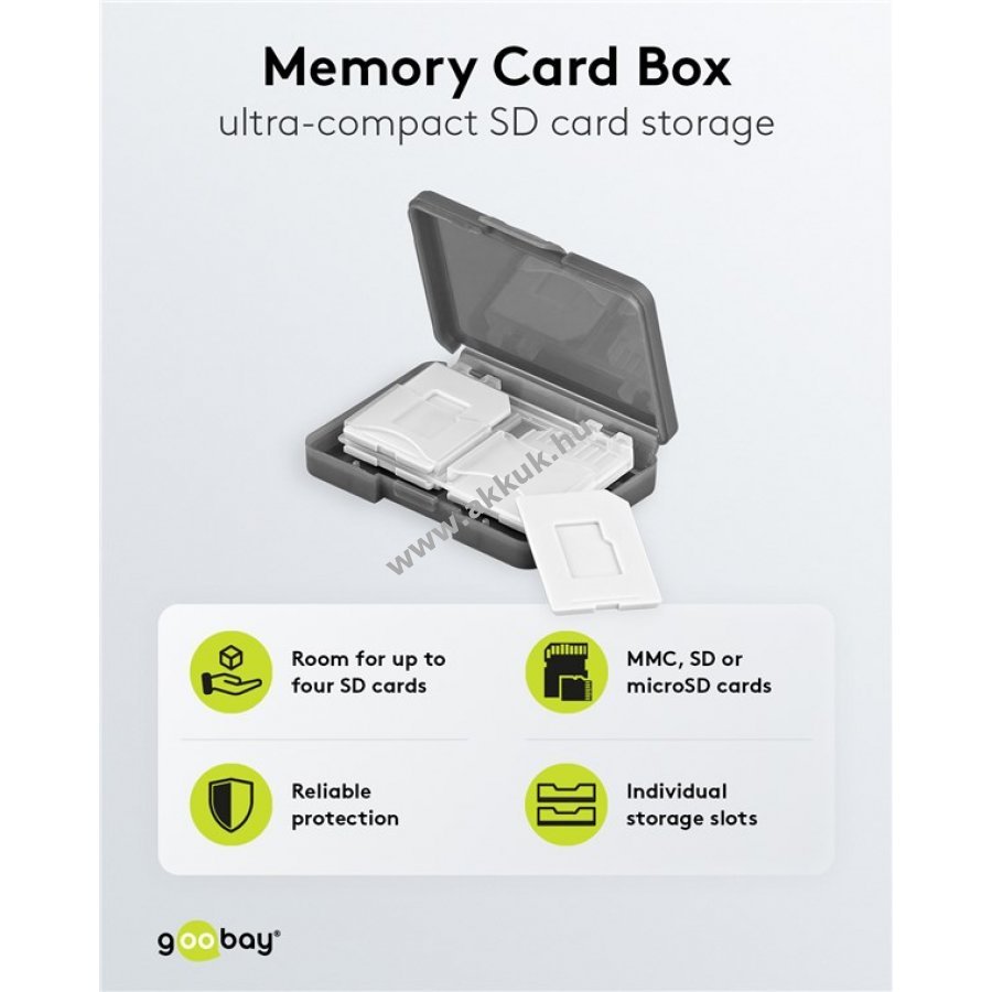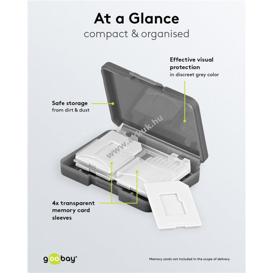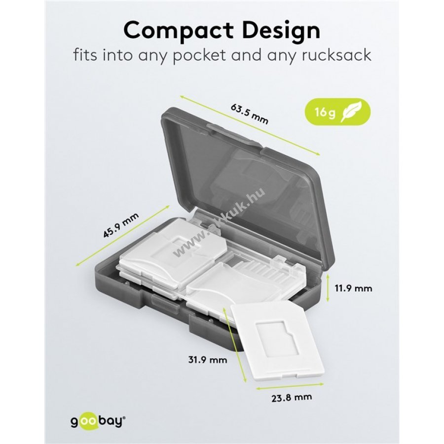 A tok belsejében található 4db 23,8mm x 31,9mm x 2,1mm méretű keret az SD-kártyák biztonságos tárolása céljából.