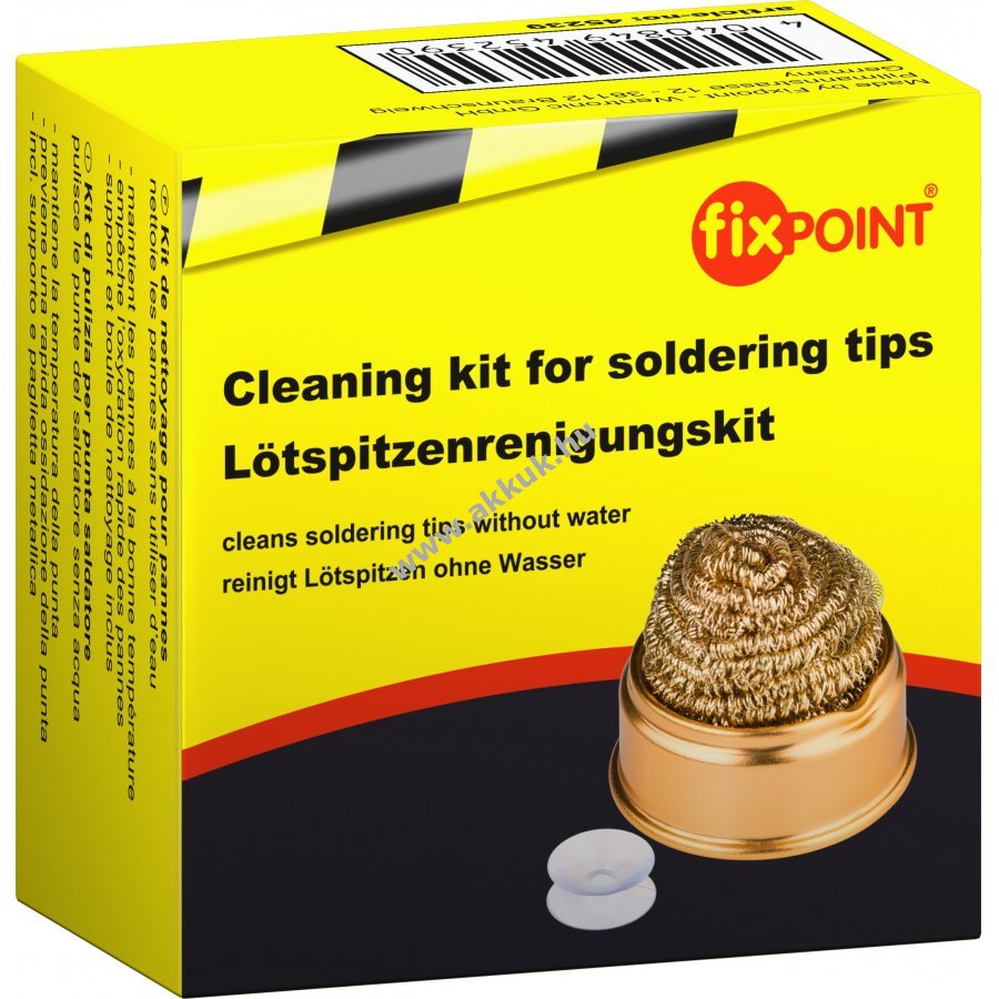 Forrasztópákahegy tisztító szett - víz nélkül tísztít, a forrasztó hegyének hőmérsékletét megtartja, megakadályozza a hegy gyors oxidációját. Tartót és tisztítóanyagot tartalmaz.