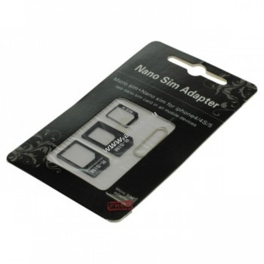 OTB SIM-Kártyaátalakító 4 az 1 ben adapter készlet kiegészítő készlet, mely 3 darab simkártya átalakítót és 1 darab simkártya kiszedo fémtut tartalmaz iPhone, iPad, iPad mini, HTC One stb. készülékekhez. Adapter Normál SIM-rol Micro-SIM-re Adapter Normál SIM-rol Nano-SIM-re Adapter Nano-SIM-rol Micro-SIM-re