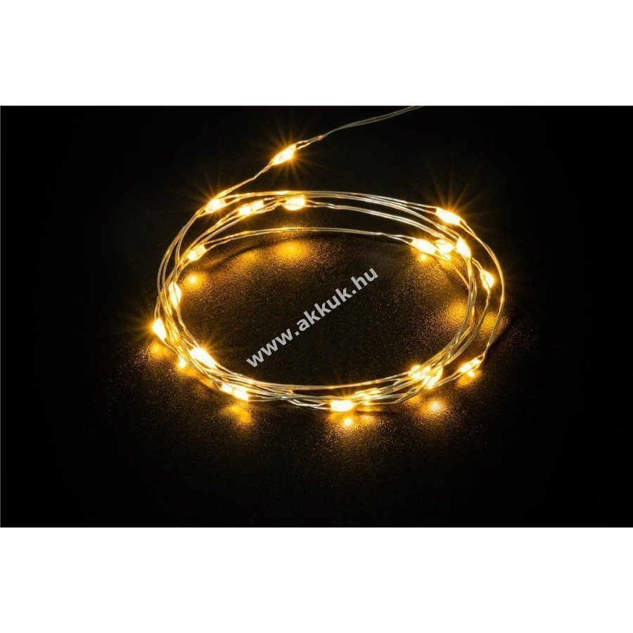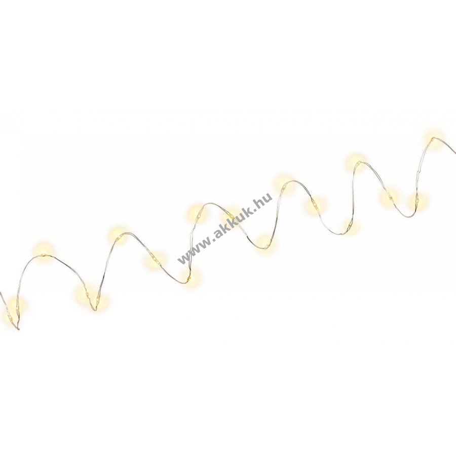 2db karácsonyi vagy dekorációs LED fénysor melegfényű 20 db LED-del időzítő funkcióval 6óra / 18 óra üzemidő Beltéri használatra alkalmas (IP20) elemmel működtetve (mindegyik 2x AA, nem tartozék) Tápvezeték kb. 0,10 m, teljes hossza kb. 1,05 m A LED-ek közötti távolság 5 cm