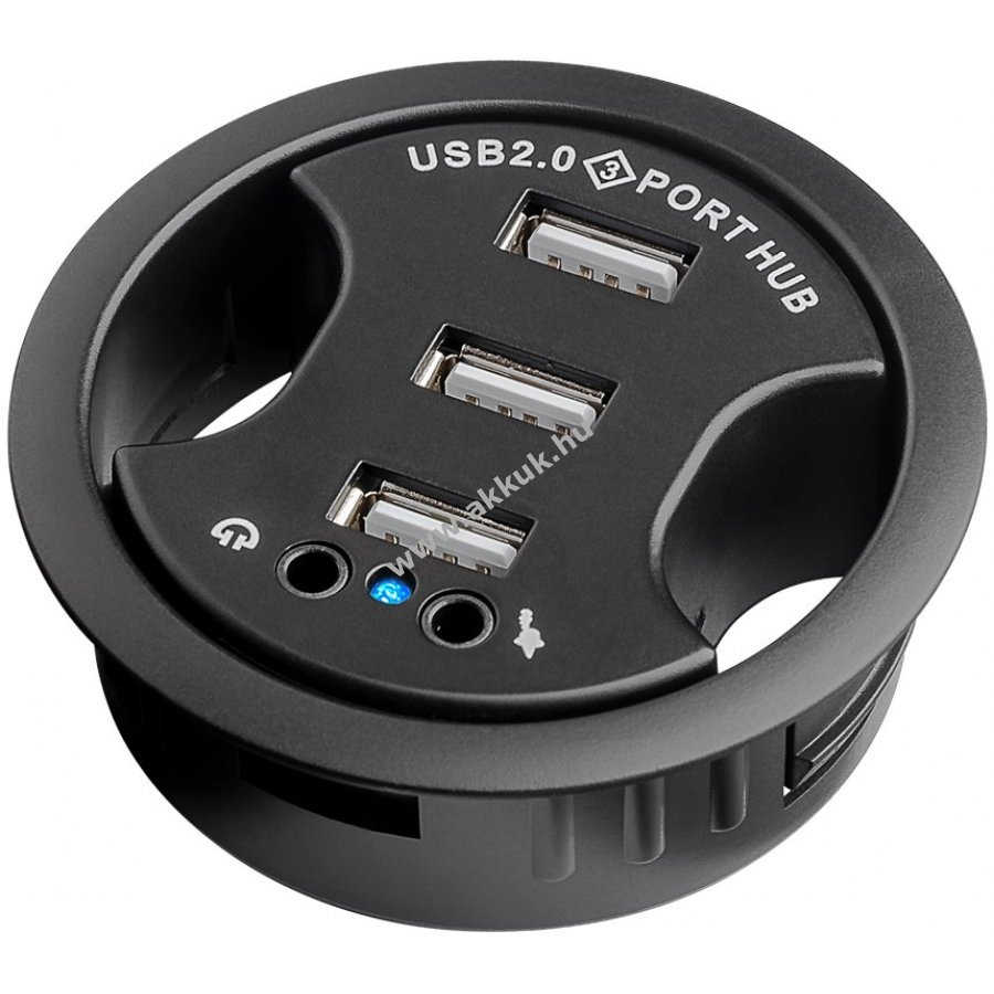 1,5 m kábel hossz -USB 2.0 HUB 60mm-es asztali kábelbemenetekbe való beépítéshez audio csatlakozóval akár 3 USB eszköz csatlakoztatásához -USB 2.0 akár 480 Mbps adatátvitel visszafelé kompatibilis az USB 1.1-gyel 2db 3,5 mm-es audio csatlakozóval headset csatlakoztatásához Windows 2000 XP VISTA 7 8 10 és MacOS kompatibilis