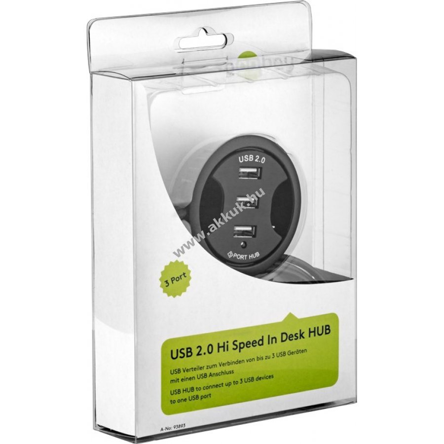 akár 3 USB eszköz csatlakoztatására egy USB porttal asztalba való beépítéshez 60 mm-es átmérő USB 2.0 akár 480 Mbps adatátvitel visszafelé kompatibilis USB 1.1 Windows 2000 XP VISTA 7 8 10 és MacOS kompatibilitással