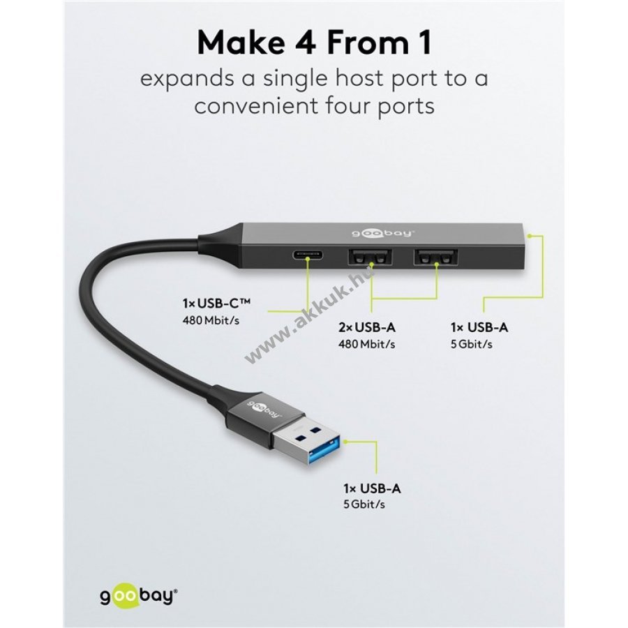 480 Mbit/s szürke 95 x 16 x 8 mm 13 gr. Goobay Szavatosság (további részletek) 4040849744587