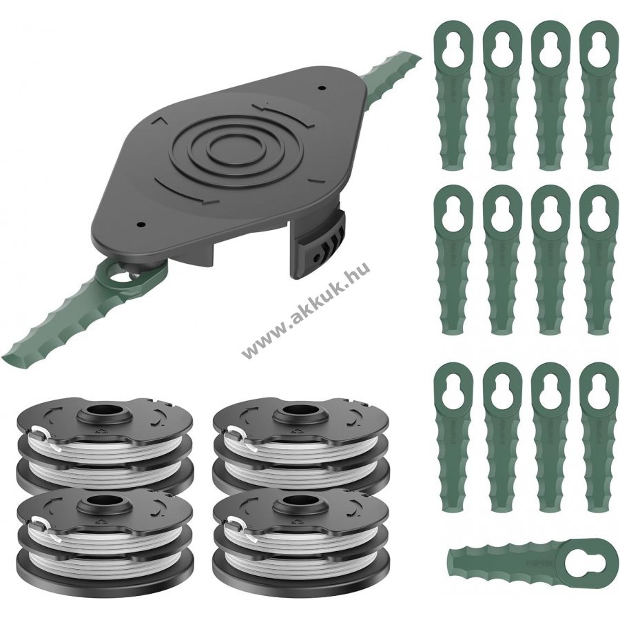 A csomagban 1db pengefejet, 15db műanyag pengét, 4db fűnyíró damil kap, könnyen felszerelhető: csak nyomja be ezt a fejet a zsinórhüvelybe, és az oldalsó gombok segítségével automatikusan rögzül, és nincs szükség adapterre.