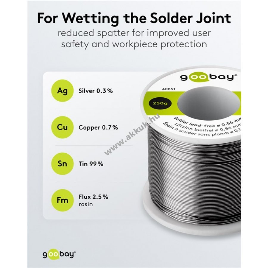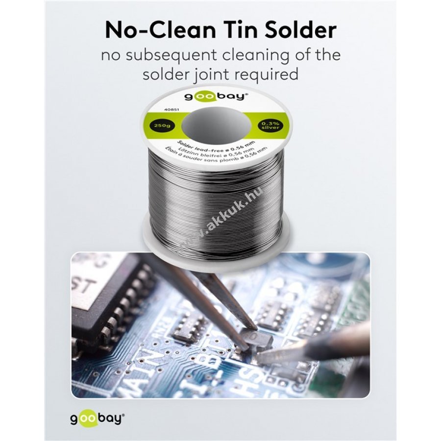 Az 0,56 mm átmérőjű vékony forrasztóón precíz munkákhoz ideális, például elektronikai alkatrészek, áramkörök, SMD és DIP elemek, kábelek, televíziók, fejhallgatók és mikrofonok forrasztásához.