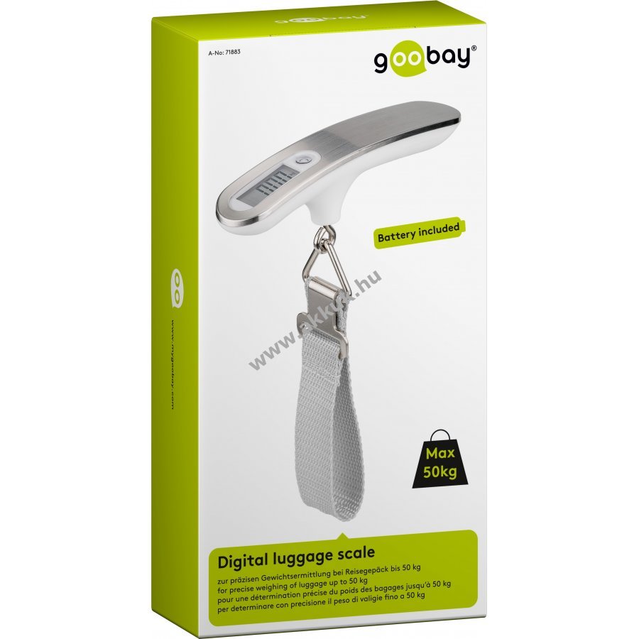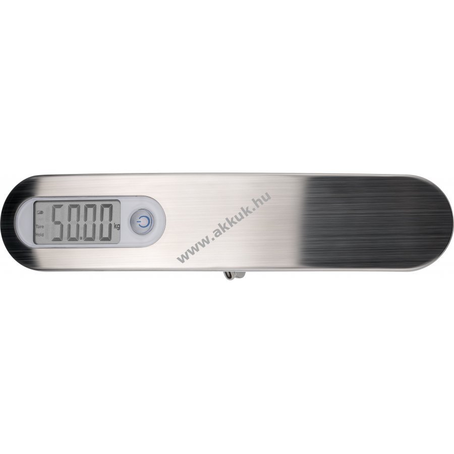 Digitális bőrönd mérleg, koffer mérleg 50kg-ig pontos méréssel, automatikus kikapcsolás, túlsúly mérés (TARA) és ergonómikus készülékforma valamint jól leolvasható LCD kijelző, a robosztus kiképzés ellenére elegáns forma, egyszerű rögzítés minden egyes csomaghoz, választható súly kg vagy lb.