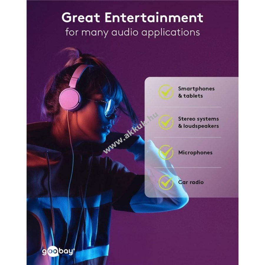 Goobay minőségi audio kiegészítőket kínál hobbi stúdiókhoz, otthoni mozizáshoz vagy baráti zenehallgatáshoz. A termékek kristálytiszta hangátvitelt biztosítanak.