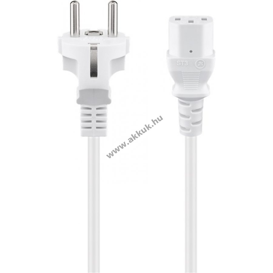 Univerzálisan használható hálózati kábel fém érintkezős védőérintkezős dugóval és C13 típusú hidegcsatlakozó aljzattal. Alkalmas számítógéphez monitorhoz projektorhoz laptophoz és más hidegcsatlakozós készülékekhez. Ideális használt hidegcsatlakozós kábel cseréjéhez.