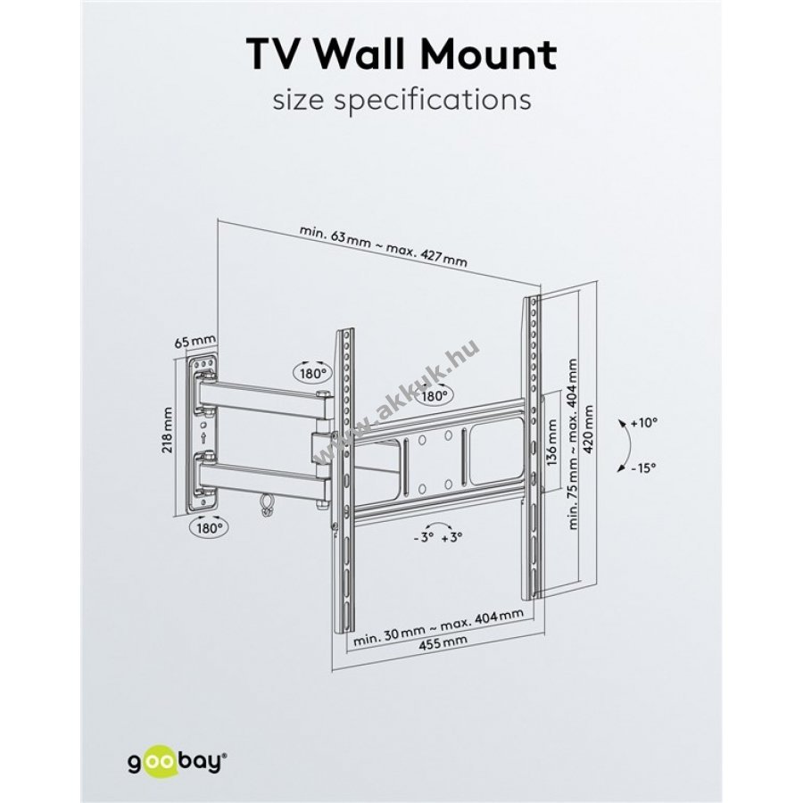 - Falhoz közel tartva: 63mm, kihúzható akár 427mm-ig