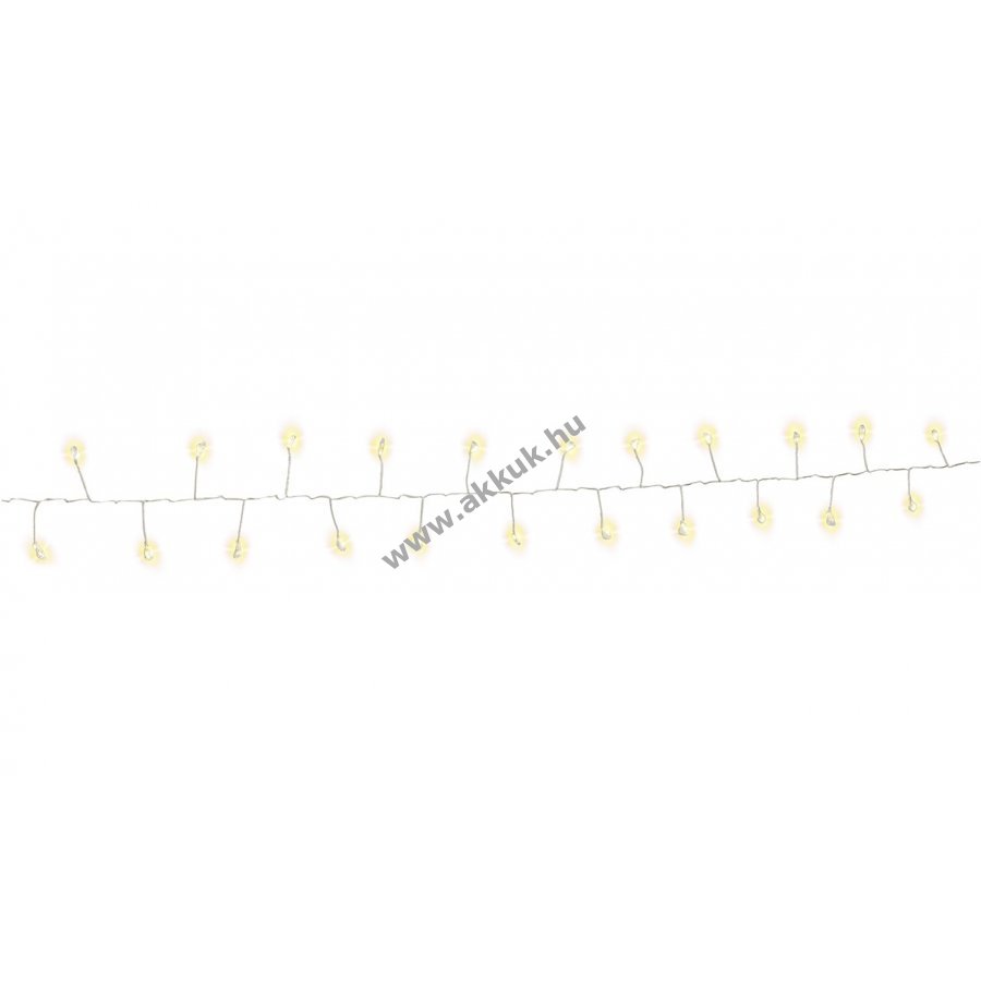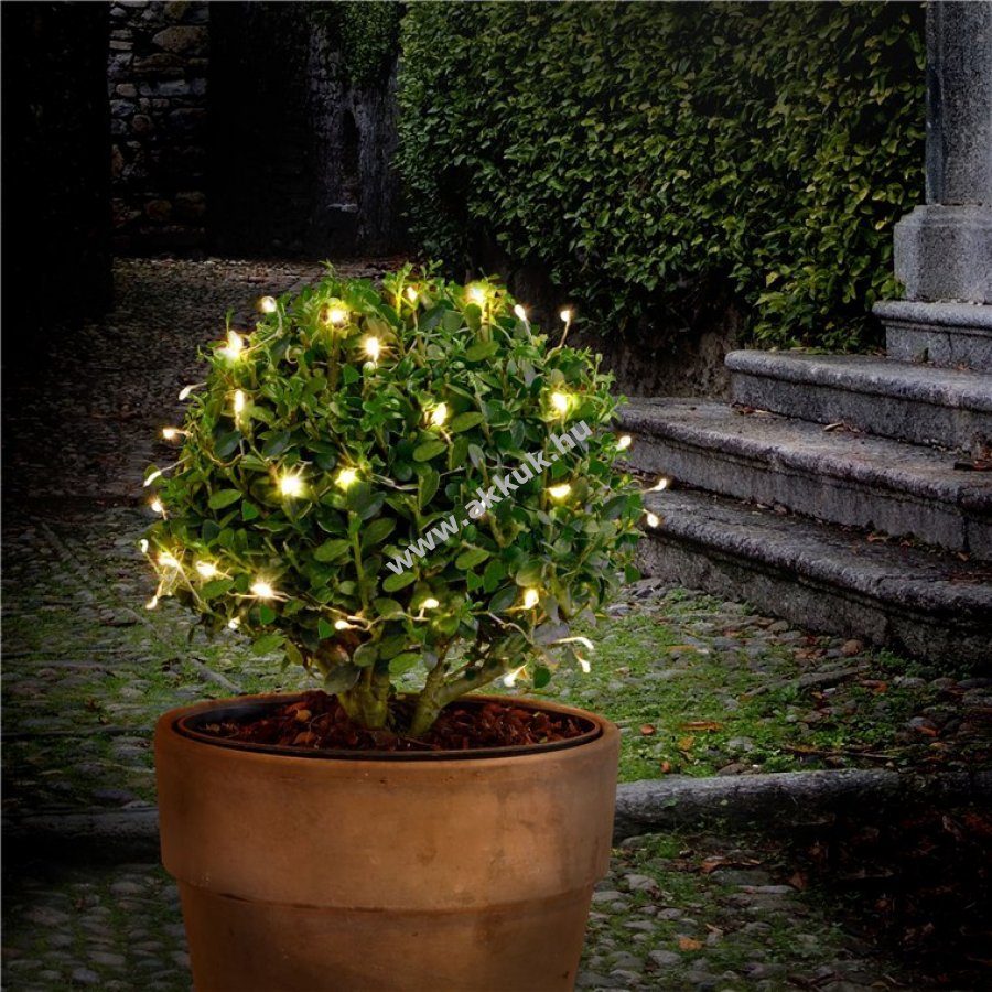 A diódák csoportos elrendezése különösen buja és pompás világítást eredményez. Kapcsoló 3 beállítással: állandó fény, villogó, kikapcsolva Teljes hossz 165 cm, vezeték 40 cm, a LED-ek közötti távolság 2,5 cm, a véghossz 2,5 cm, ezüst drót. Elemmel működtethető: (nem tartozék): 3 x AA, 1,5 V (nem tartozék) Hangulatos világítás a teraszra, erkélyre, ablakba, virágcsokorba vagy bokrokba Az ezüst drót könnyen rögzíthető és hajlítható, ahová és ahogyan csak akarja