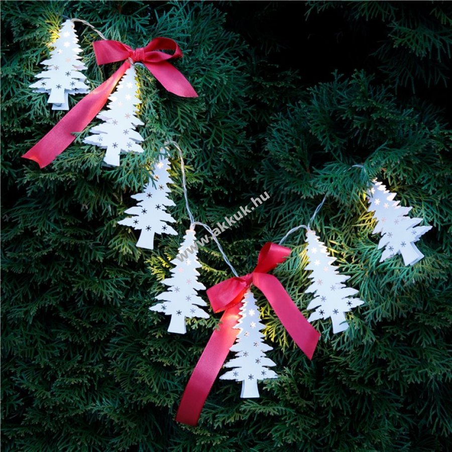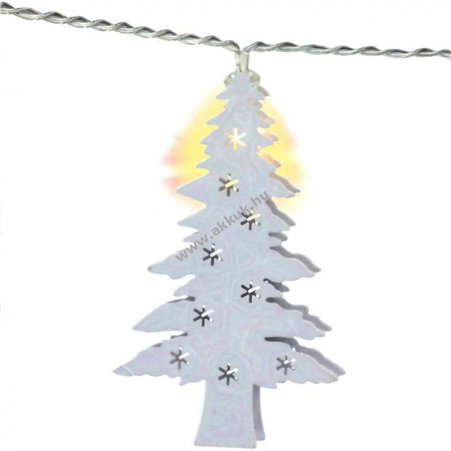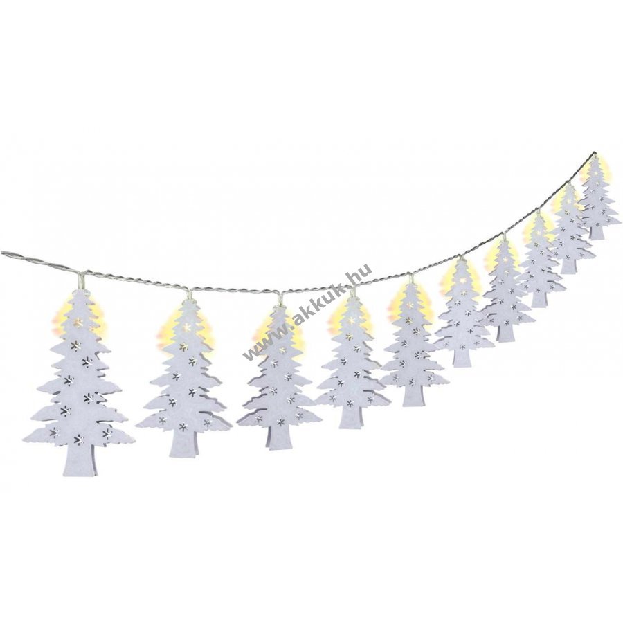 Időzítő funkcióval - 6 óra bekapcsolás / 18 óra kikapcsolás, 3 állású kapcsoló - ON / OFF / időzítő Teljes hossza 130 cm, vezeték 40 cm, a LED-ek közötti távolság 10 cm, átlátszó kábel Elemmel működtethető (2 x AA, nem tartozék) IP20 - beltéri használatra Fémből készült függők, fehér, kb. 6,5 x 11 x 1 cm Tökéletesen illeszkedik minden karácsonyi és téli dekorációhoz. A gyönyörű fénylánc kellemes fényt és ünnepi hangulatot áraszt. Minden lámpát egy fehér fenyőfa alakú fém medál díszít.