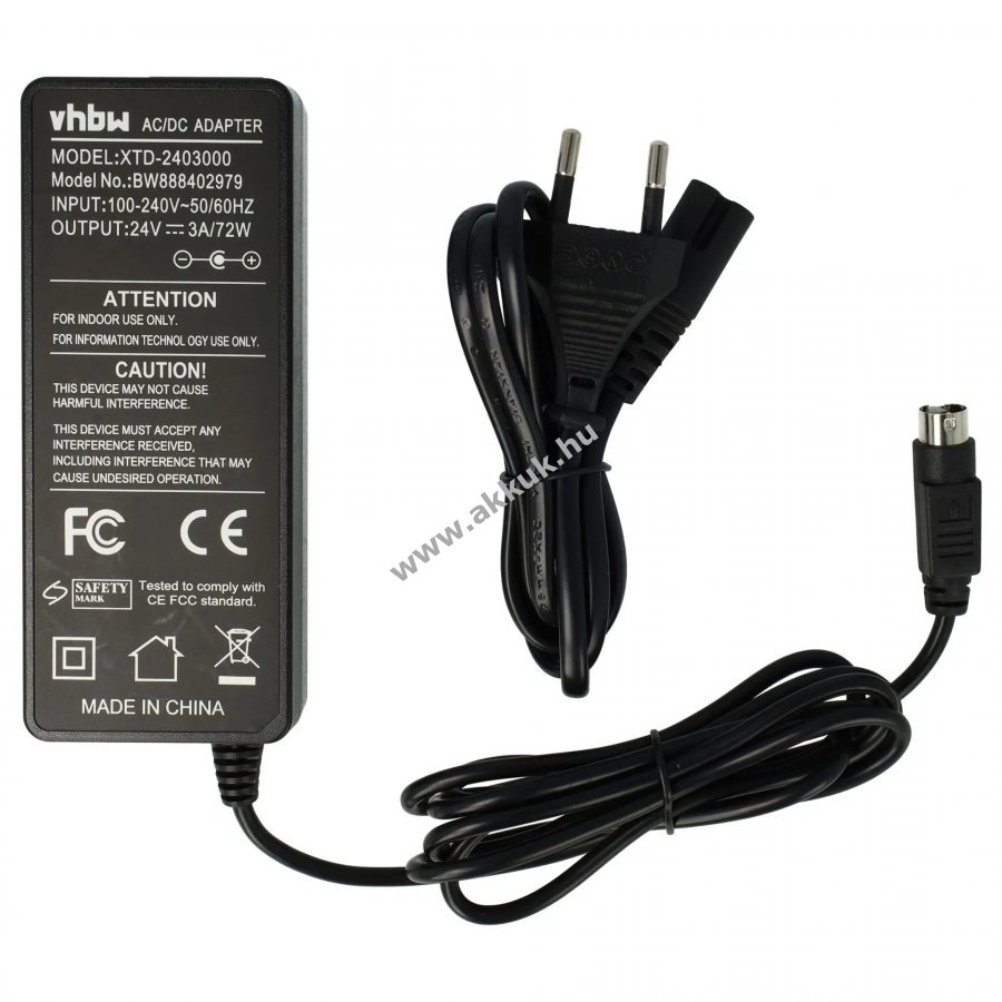 Vadonatúj, eredeti csomagolásban Nem eredeti termék - a vhbw márka kiváló minőségű és kompatibilis tartozéka. Állandó áramellátást biztosít a nyomtató számára - pl. helyhez kötött működés közben. Műszaki adatok: Bemeneti feszültség: 100 - 240V Frekvencia: 50/60 HZ Kimeneti feszültség: 24V Kimeneti áram: 3A / 72W AC/DC adapter Túlterhelés, rövidzárlat és túlmelegedés ellen védett Megfelelő tápkábellel és EU csatlakozóval (egyenes) Készülékcsatlakozó csatlakozó egyenes Méretek (HxSzxM): kb. 14,7 x 10 x 3,3 cm Súly: kb. 300 g Szín: fekete Anyag: műanyag Kábel teljes hossza: kb. 2,30 m