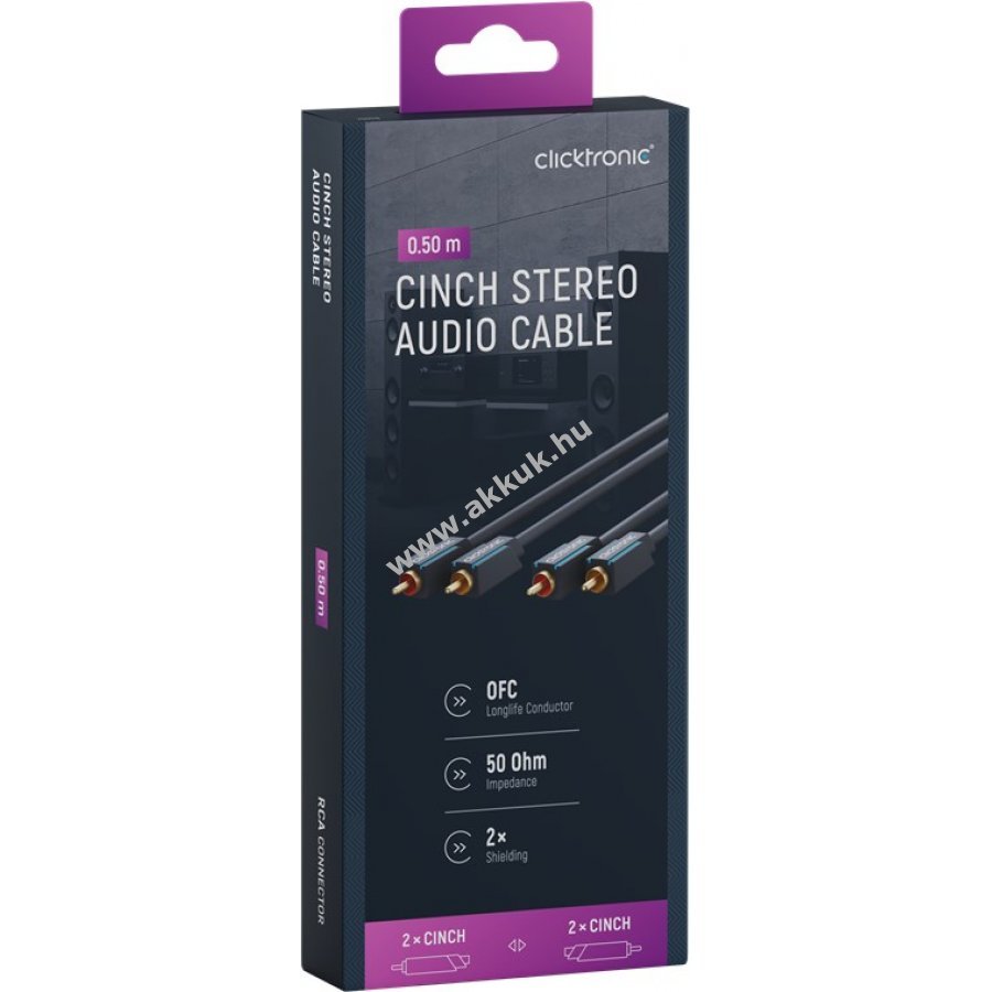 A Clicktronic nagy hangsúlyt fektet a tartósságra és stabilitásra 10 év garanciát vállalva a cinch kábelekre. A háromrészes csatlakozó PVC és ABS elemekből áll amely tompítja a hirtelen rángatást így védi a kábelt a töréstől. Magas minőségű aranyozott nikkelezett érintkezők és tiszta réz vezetők biztosítják a sztereó jelek maximális hangminőségű átvitelét a tökéletes hangzásért. A márkára jellemző masszív kivitel hosszú távú otthoni szórakozást garantál.