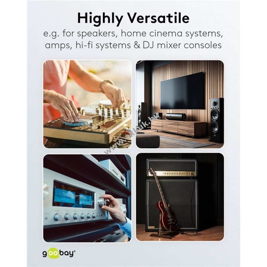 Univerzálisan használható például házimozi rendszerekhez hangszórókhoz erősítőkhöz Hi-Fi rendszerekhez lemezjátszókhoz és DJ keverőkhöz.
