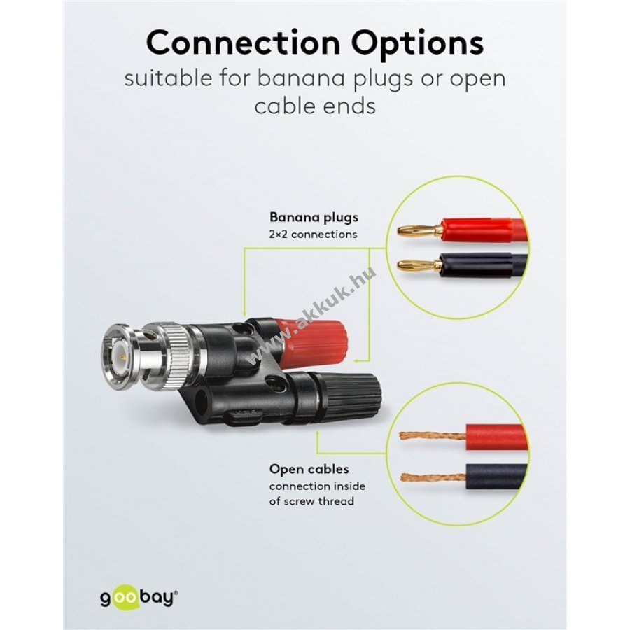 BNC adapter koaxiális kábelek csatlakoztatásához banán csatlakozókkal mérőműszerekhez mint jelgenerátor vagy oszcilloszkóp valamint videó és nagyfrekvenciás technika számára