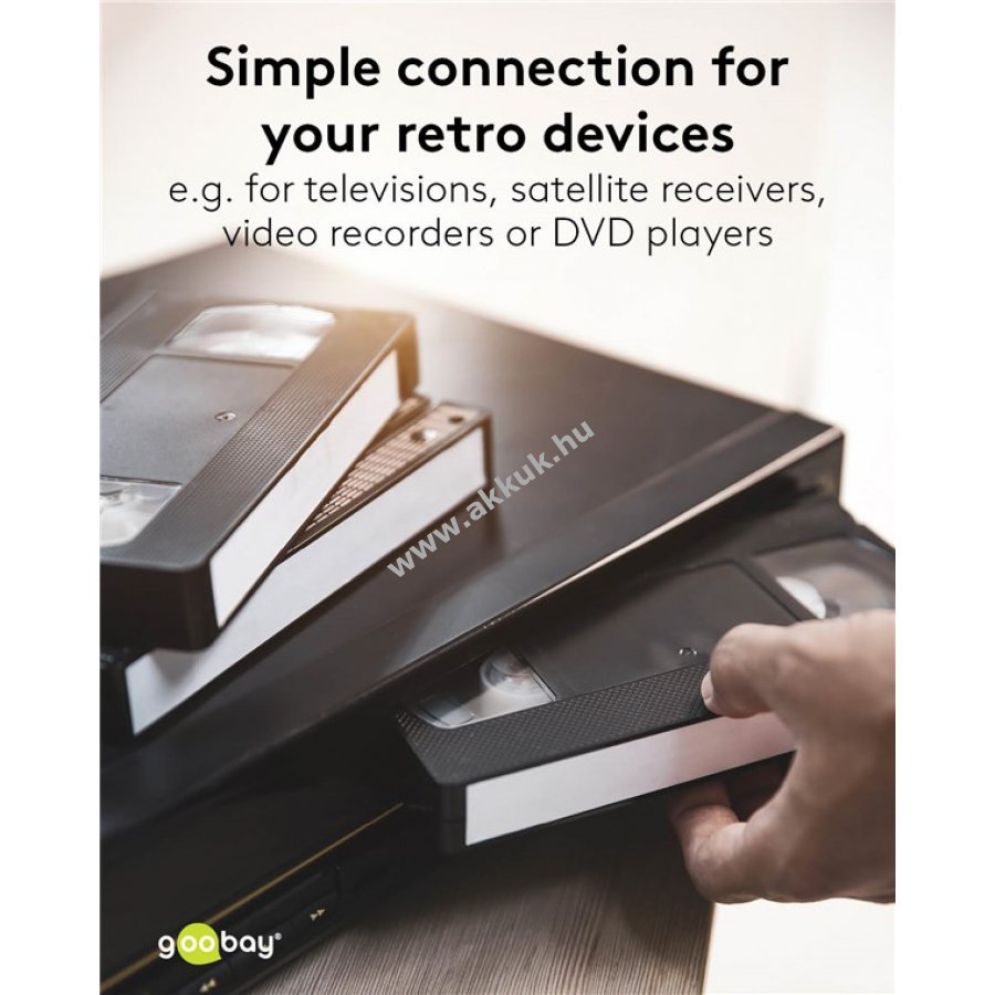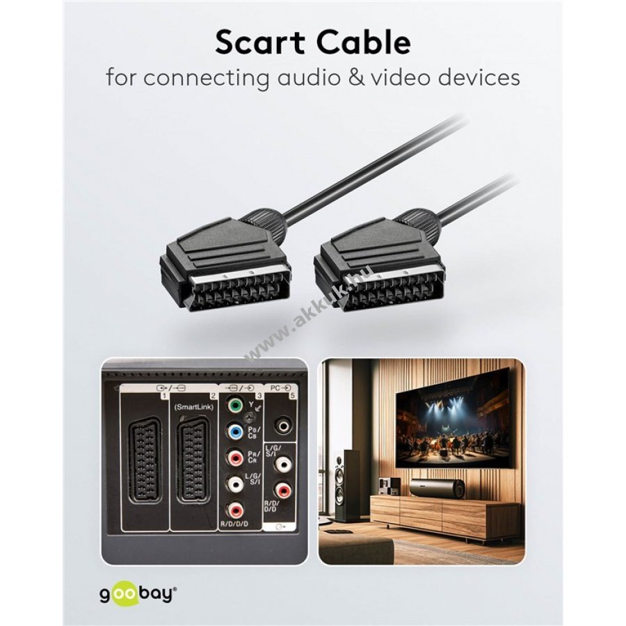 Goobay SCART-kapcsolókábel audio- és videóeszközök csatlakoztatásához, kristálytiszta jelátvitel zavarok nélkül.