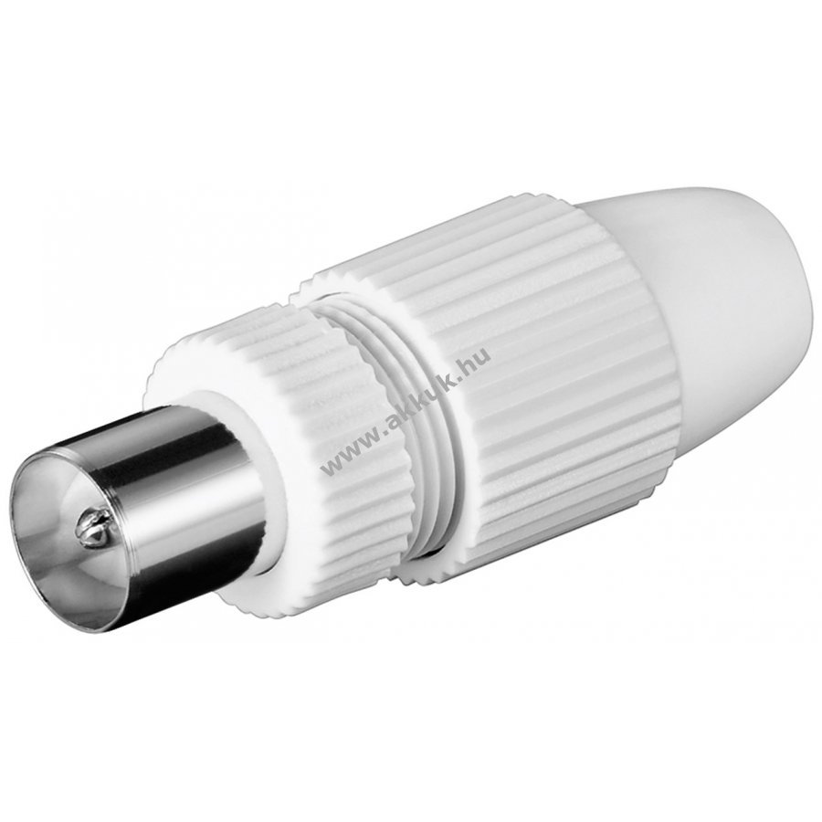 Koaxiális kábelhez csatlakoztatható gyorscsatlakozó műanyagból bilincses rögzítéssel. Alkalmas digitális és analóg jelek továbbítására. Használható TV és videó készülékek valamint DVB-T vevők antennaaljzathoz való csatlakoztatásához.