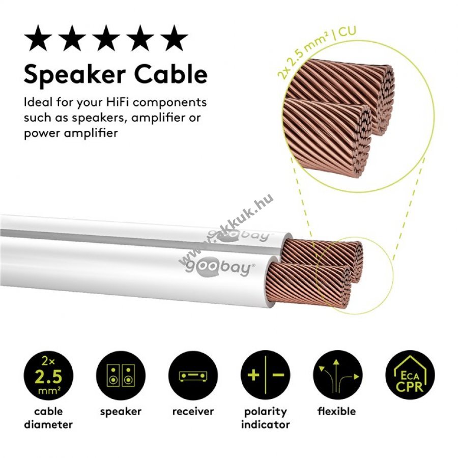 Goobay hangszórókábel kiváló minőségű OFC réz belső vezetékkel a tiszta hangátvitelért. A robusztus PVC köpeny rugalmas és könnyen szerelhető. Kifejezetten Hi-Fi rendszerek, házimozi, hangfalak, erősítők és végfokok összekötésére alkalmas. Polaritásjelzéssel a helyes csatlakoztatásért. Megfelel a BauPVO/CPR szabványnak és az Eca tűzvédelmi osztálynak. Meteráruként szállítva, igény szerint vágható és szerelhető.