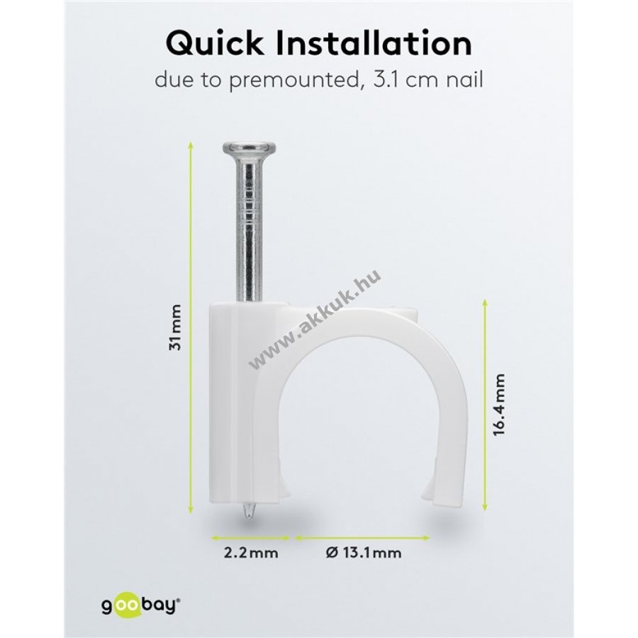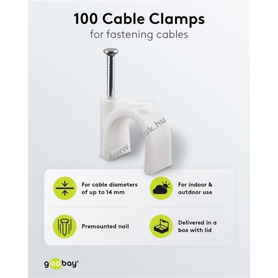 Kábelrendező falra ajtókeretre és sarkokba történő vezetékfektetéshez. Stabilizált PE műanyagból és cinkezett acél szeggel készül. Beltéri és kültéri használatra egyaránt alkalmas. Jó szigetelésű, korrózió- és öregedésálló.