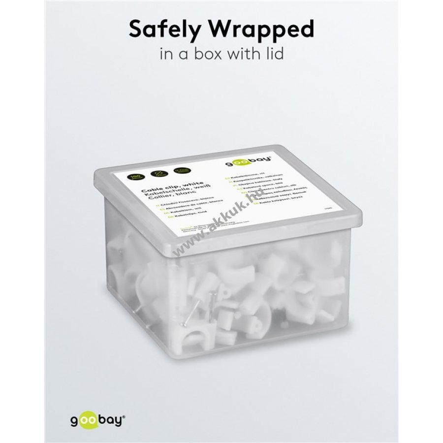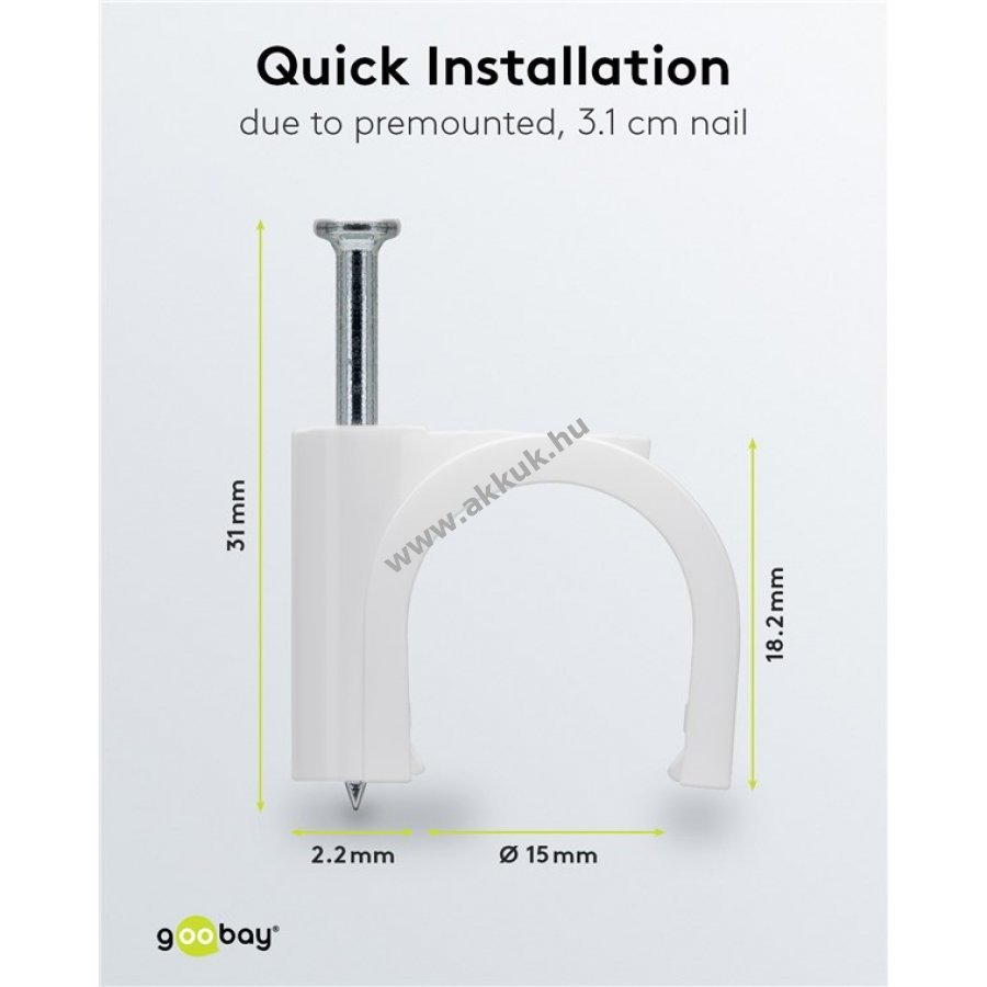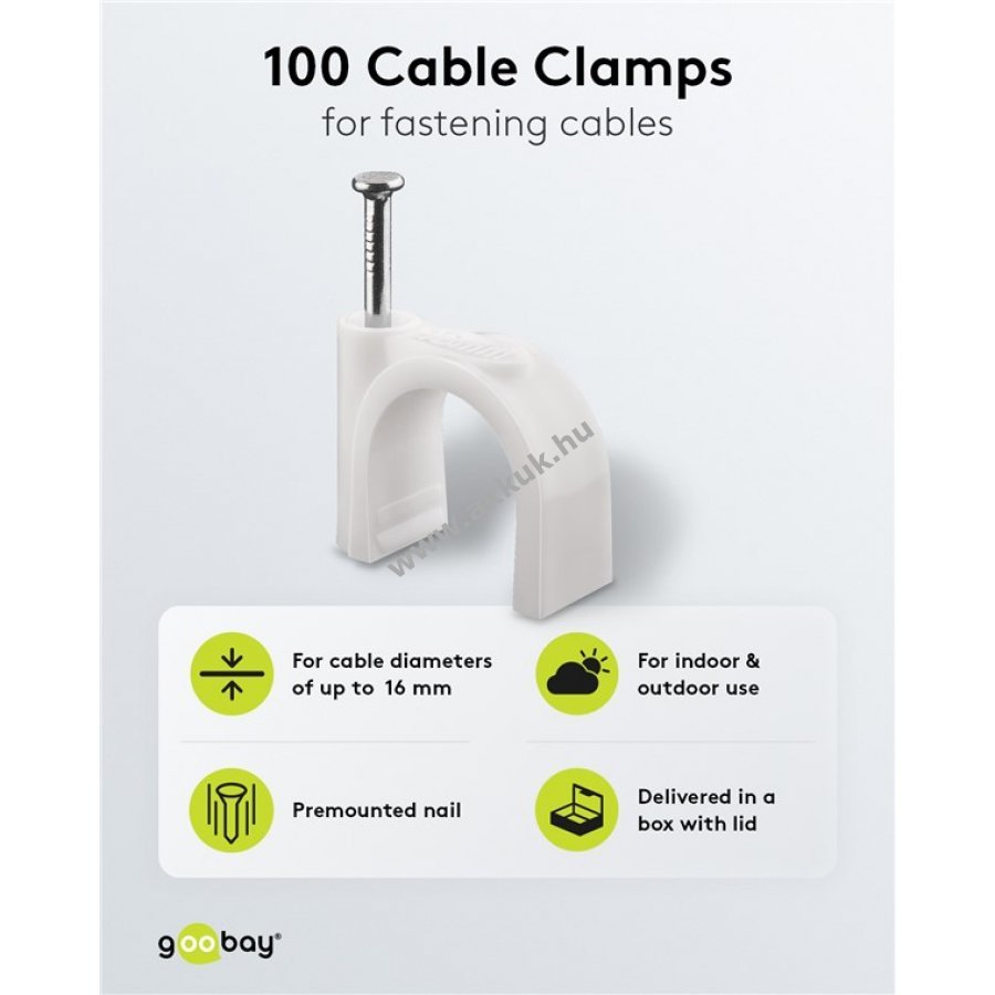 Kábelrendező bilincs kábelek rögzítéséhez falra ajtókeretre és sarkokba. Kiváló minőségű stabilizált PE műanyag és cinkezett acél szögek. Beltéri és kültéri használatra egyaránt alkalmas jó szigeteléssel korrózió- és öregedésálló.