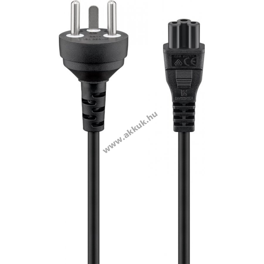 Hálózati kábel dán típusú K dugóval és IEC-60320-C5 csatlakozóval. Alkalmas monitor, szkenner, projektor, nyomtató, hangszóró és más készülékek csatlakoztatására. Ideális használt hálózati kábel cseréjére.