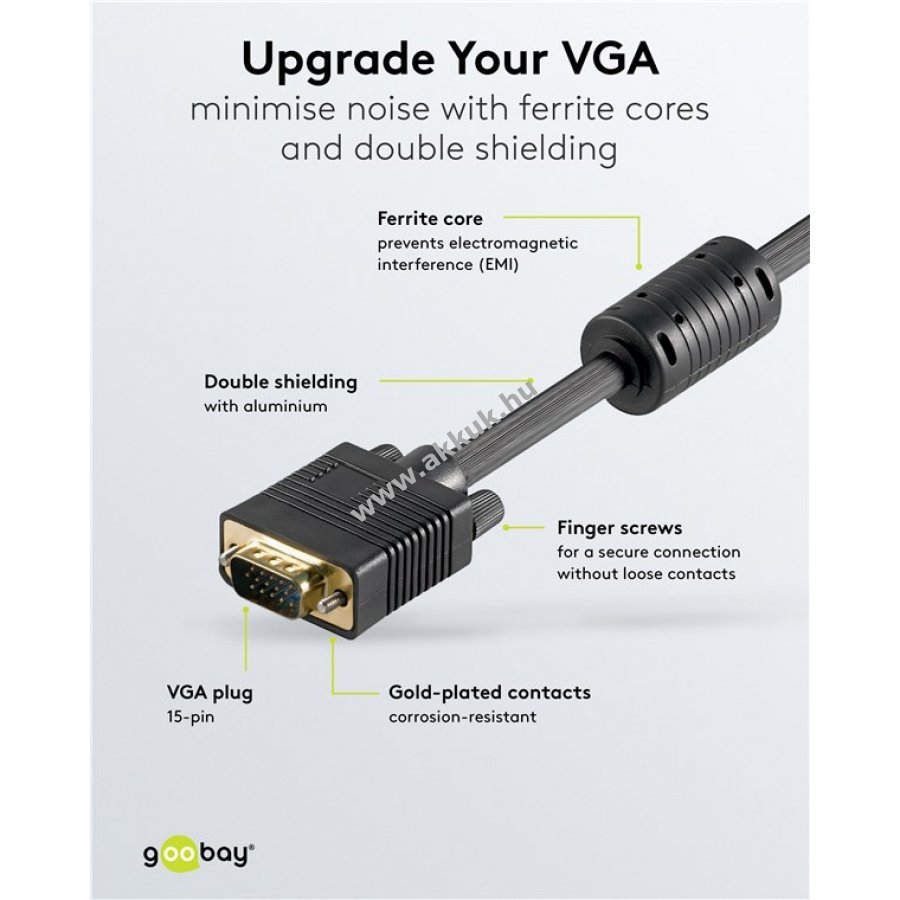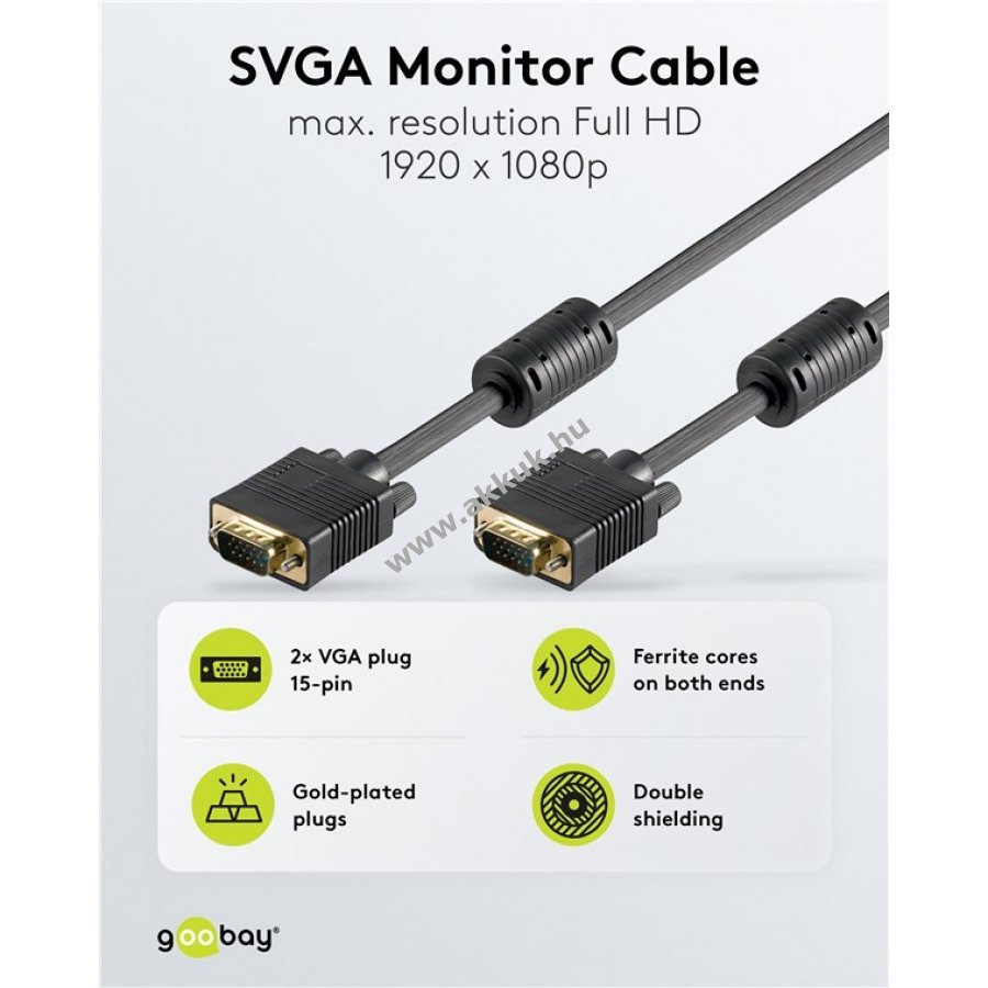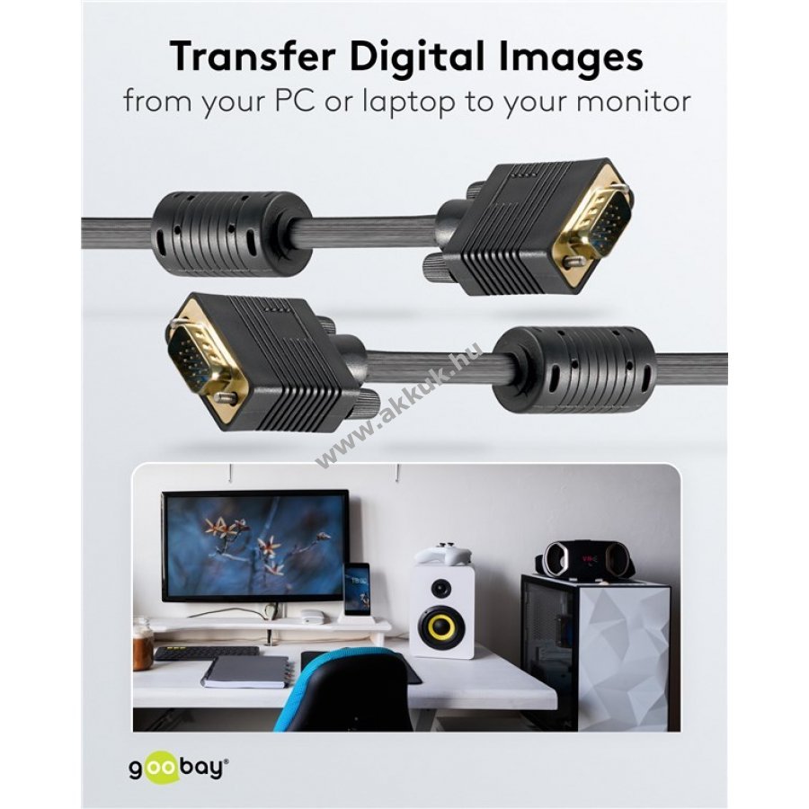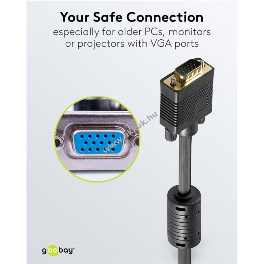 A Goobay VGA-VGA kábel PC vagy laptop és monitor, képernyő vagy projektor összekötésére szolgál.
