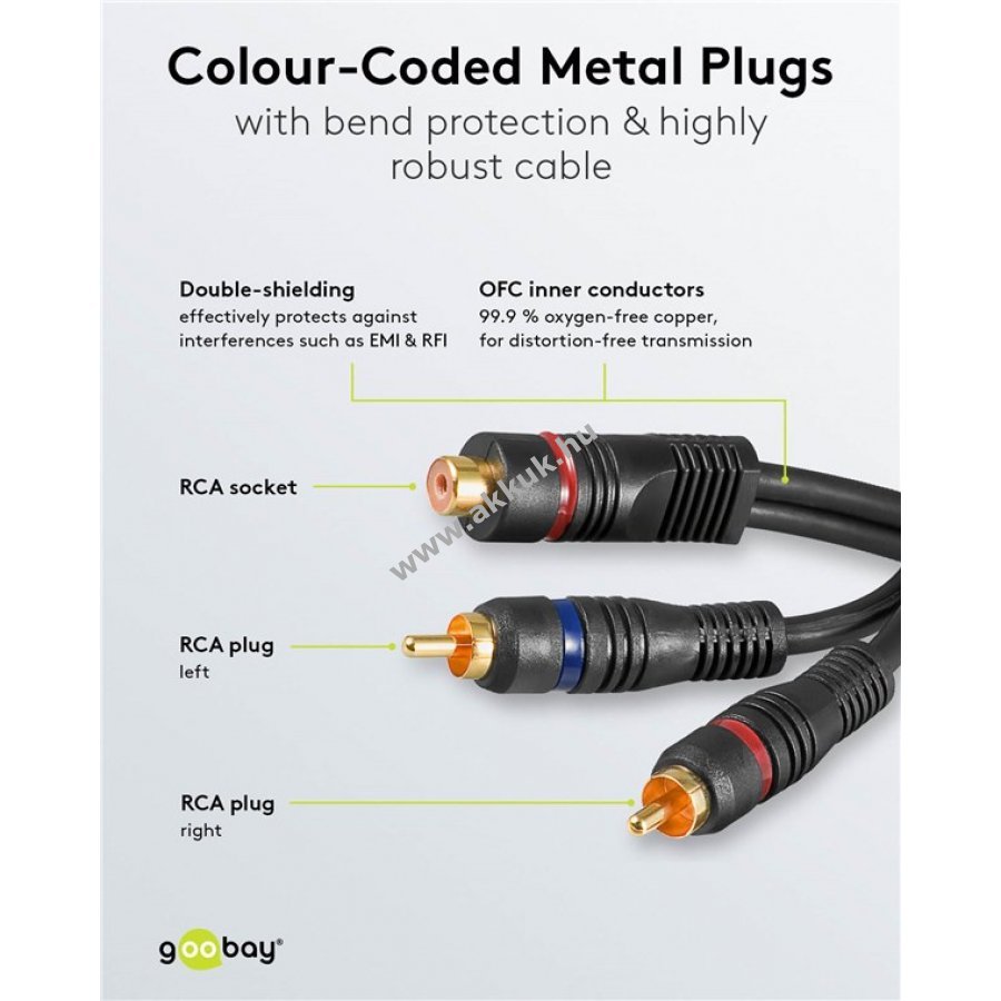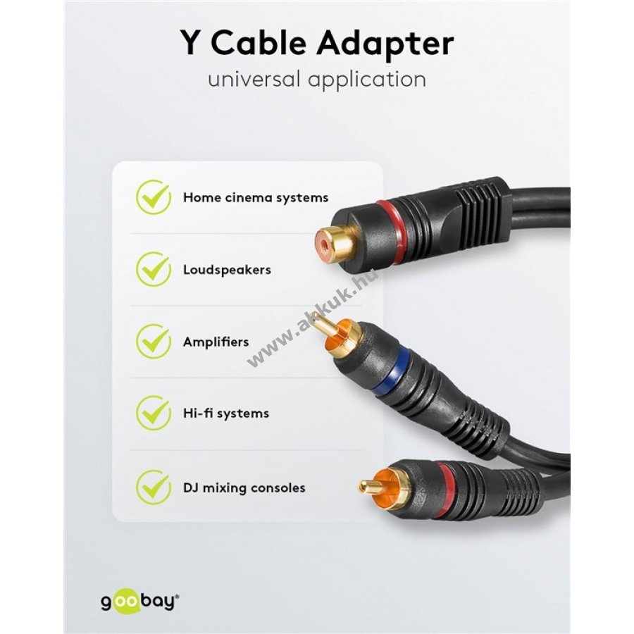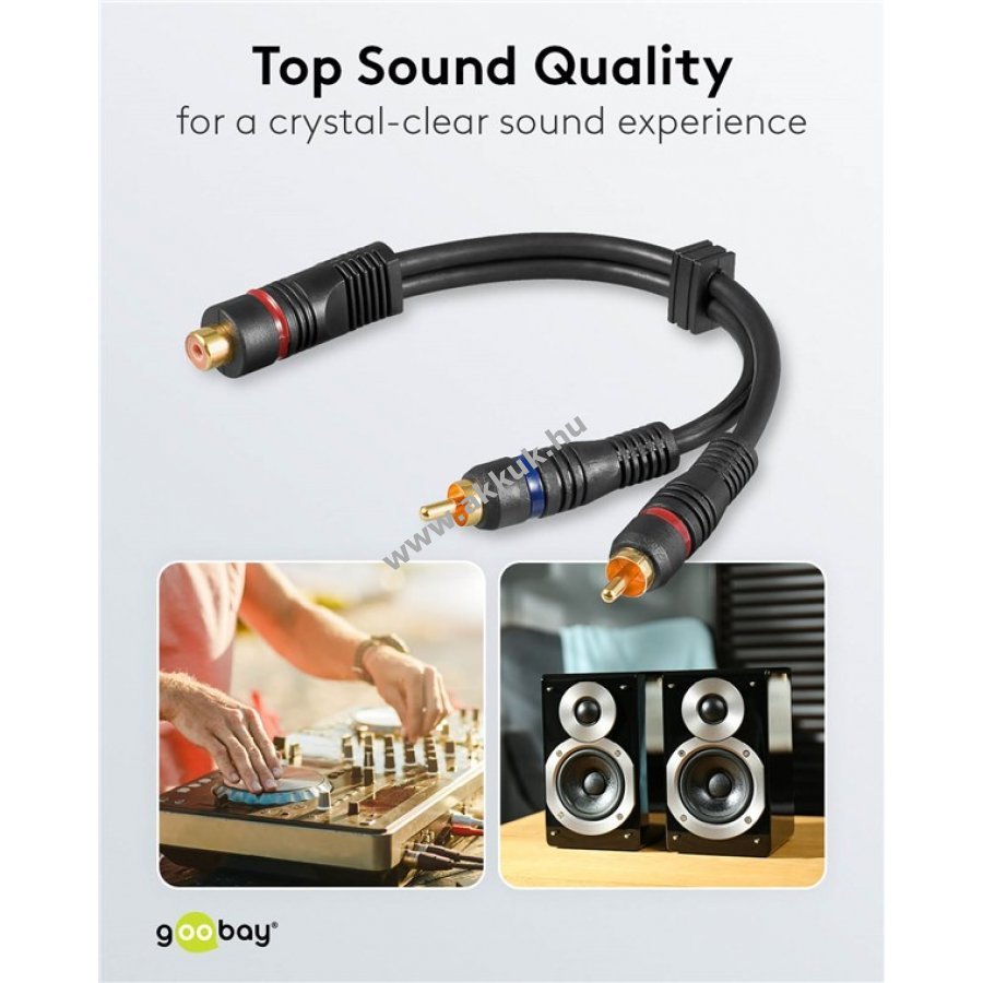 Goobay audio Y-kábel adapter kiváló hangminőséghez erősítőhöz televízióhoz CD-lejátszóhoz keverőpulthoz és házimozi rendszerekhez