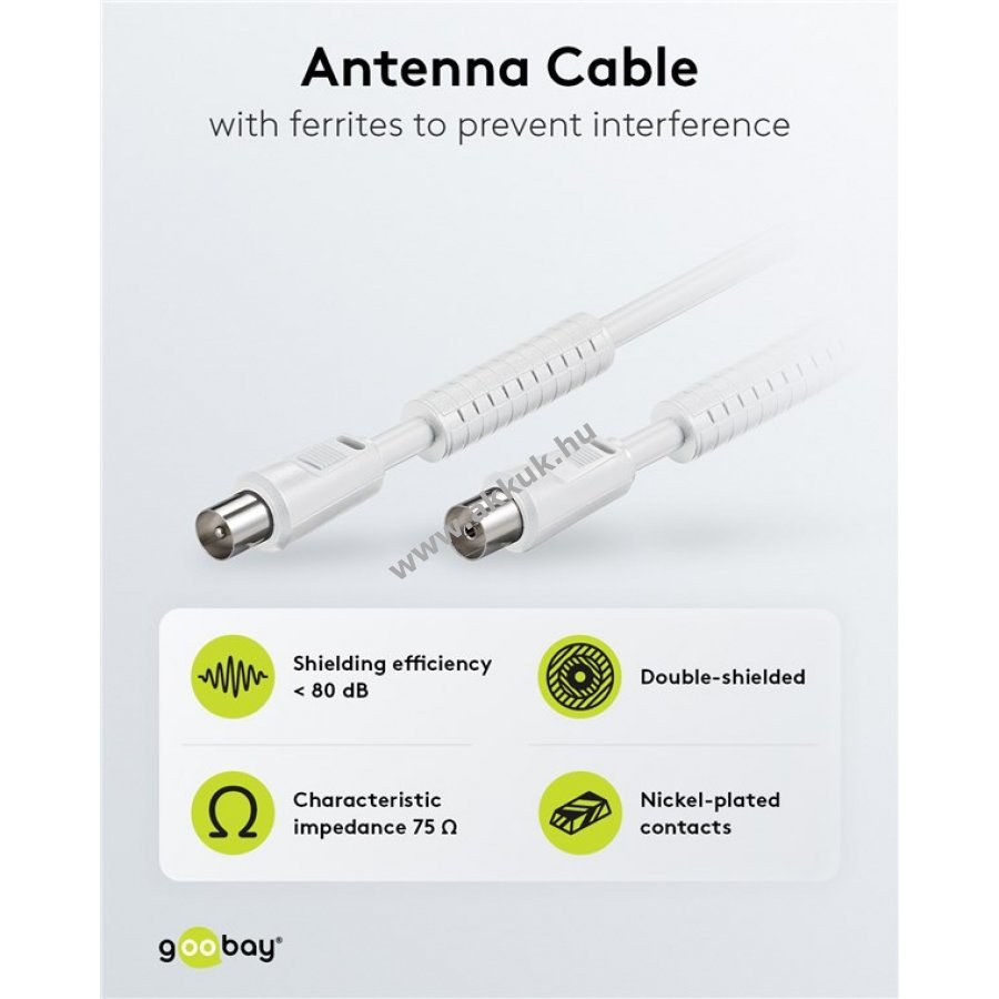 Dupla árnyékolású antennakábel ferritmaggal a zavartalan jelátvitelért 80 dB árnyékolási hatékonysággal