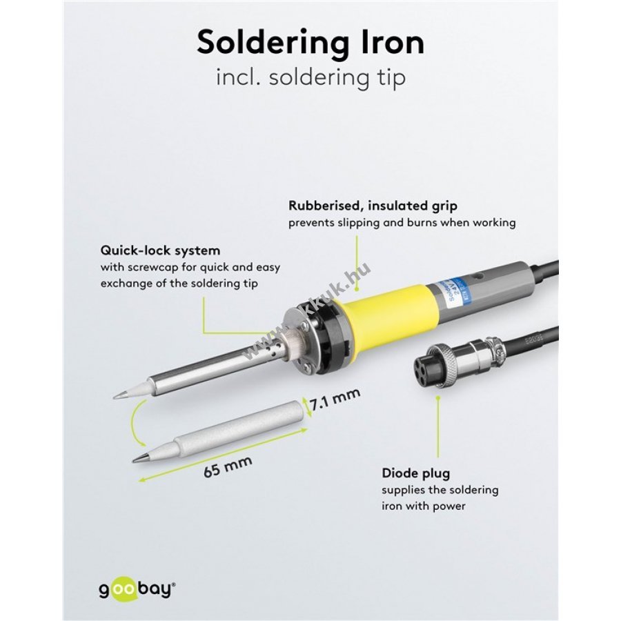 A praktikus zárórendszer gyors cserét tesz lehetővé a külön megvásárolható forrasztóhegyekkel.
