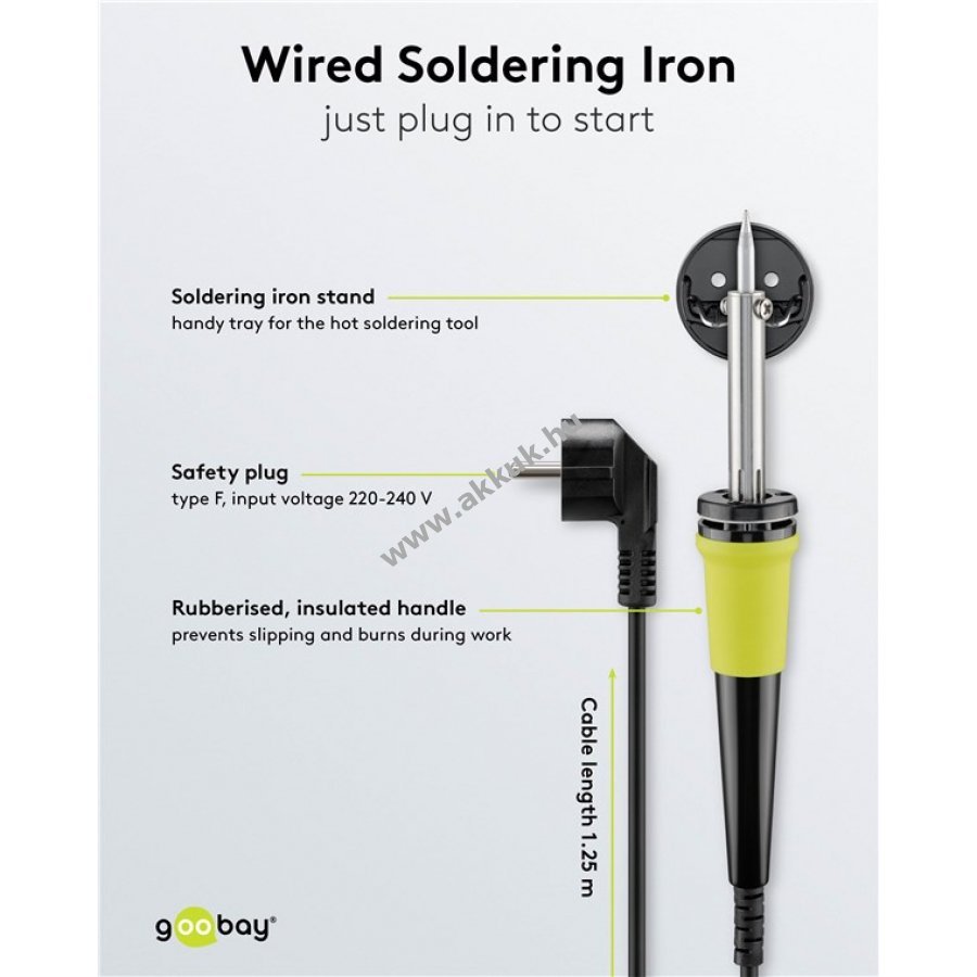 Kábelhez kötött finom hegyű forrasztópáka kis javításokhoz és ólommentes forrasztáshoz