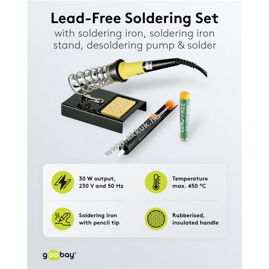 Forrasztó maximális teljesítménye 30 W, legmagasabb hőmérséklet 450 °C