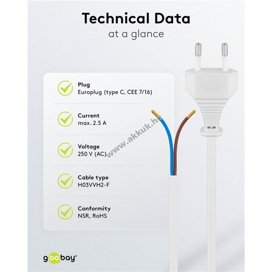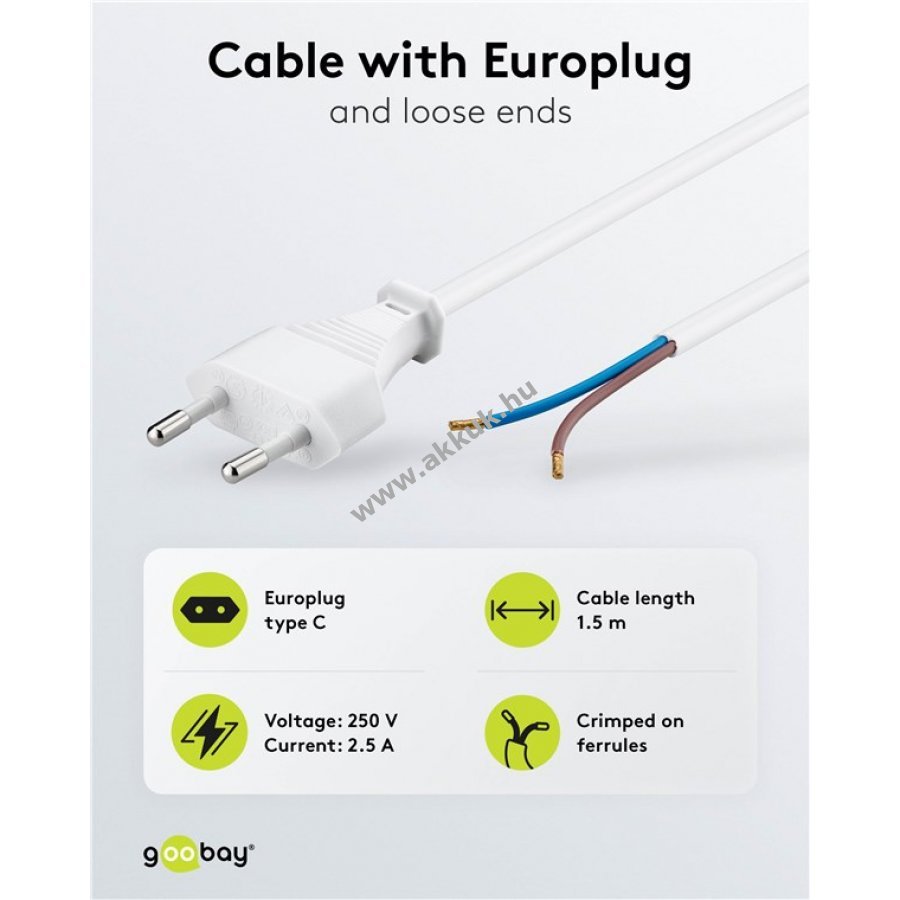 Hálózati kábel nyitott végekkel és préselt érvéghüvelyekkel szereléshez. Elektromos készülékek csatlakoztatásához Eurodugóval (Typ C, CEE 7/16).