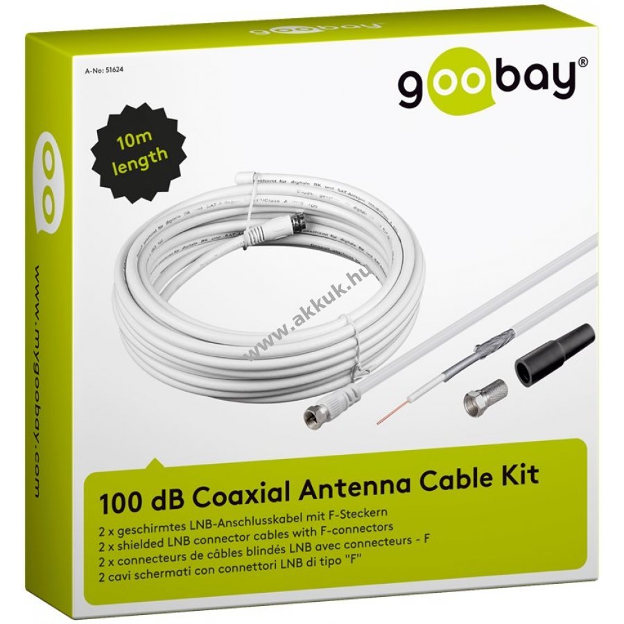 Műholdas antenna kábel egy Single-LNB közvetlen csatlakoztatásához alkalmas Kábel egyszerűbb elhelyezése és faláttörése az egyik oldalon szabad kábelvéggel Dupla árnyékolású televíziós kábel a zavartalan jelátvitelért Antennakábel belső vezetője 1,13 mm vastag rézbevonatú acélból Tartozékok közé tartozik 1 db F-csatlakozó és 1 db időjárásálló védőhüvely