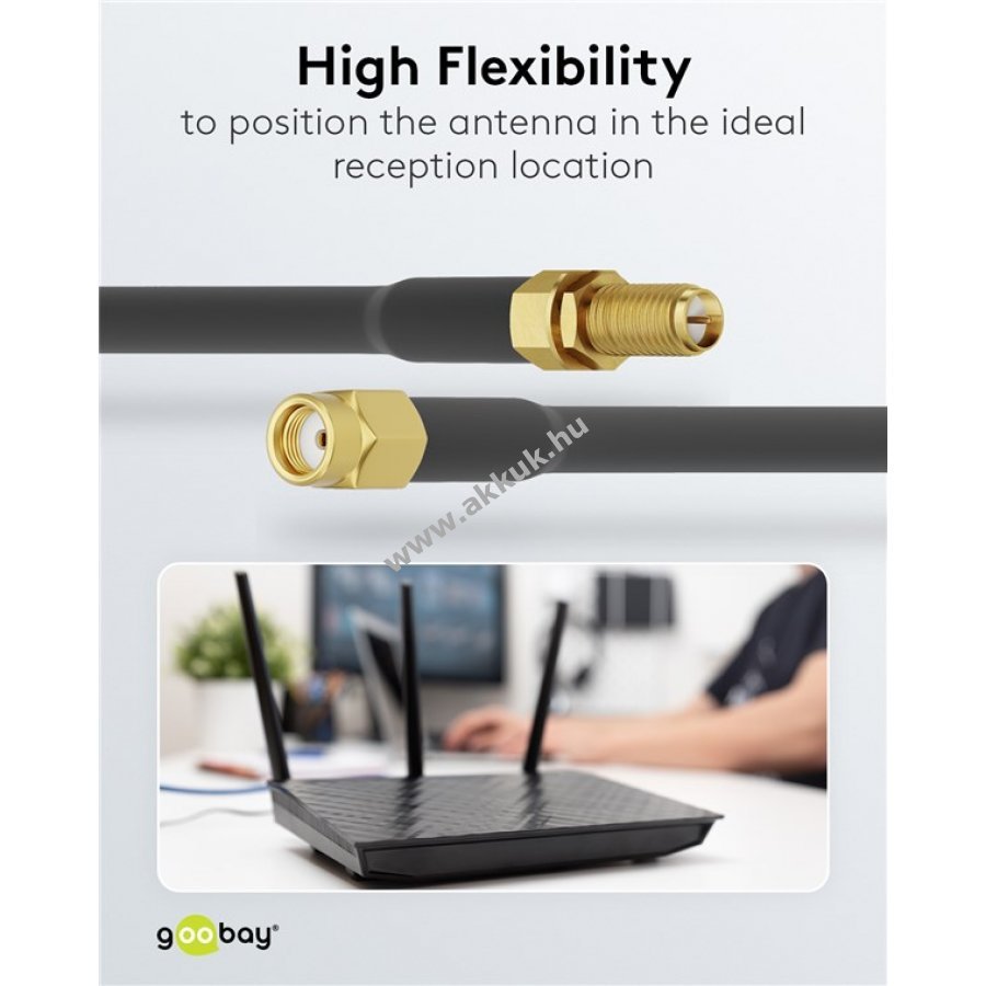Alkalmas minden szabványos RP-SMA csatlakozós WLAN routerhez és antennához